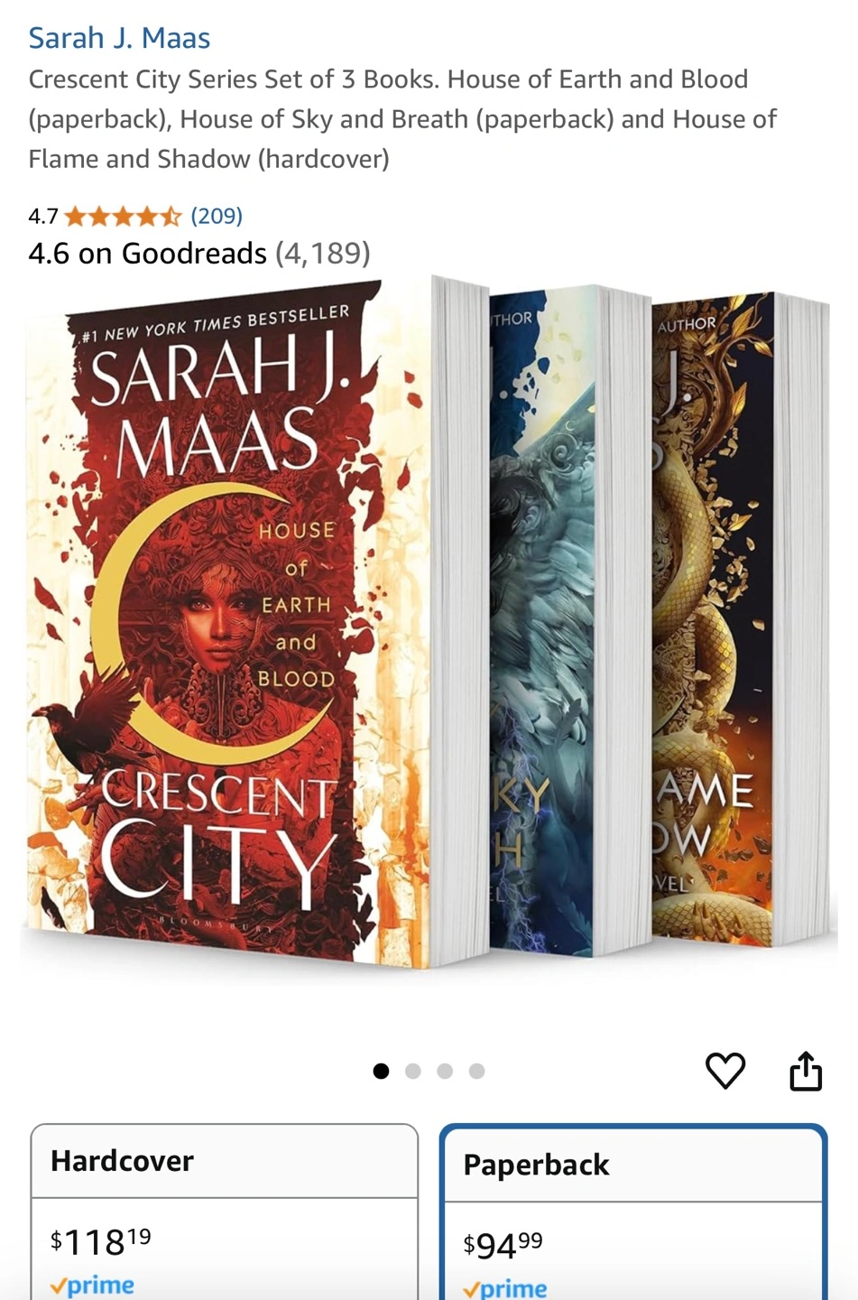 Unopened brand new Crescent City Series by Sarah J. Maas. They’re in pristine condition, no cracked spines, absolutely never opened (okay maybe I opened book two’s last page to confirm the spoiler lol)! Books one and two are paperback and book three is hardcover. What you’ll be getting: 1. House of Earth and Blood (paperback) 2. House of Sky and Breath (paperback) 3. House of Flame and Shadow (Hardcover)
