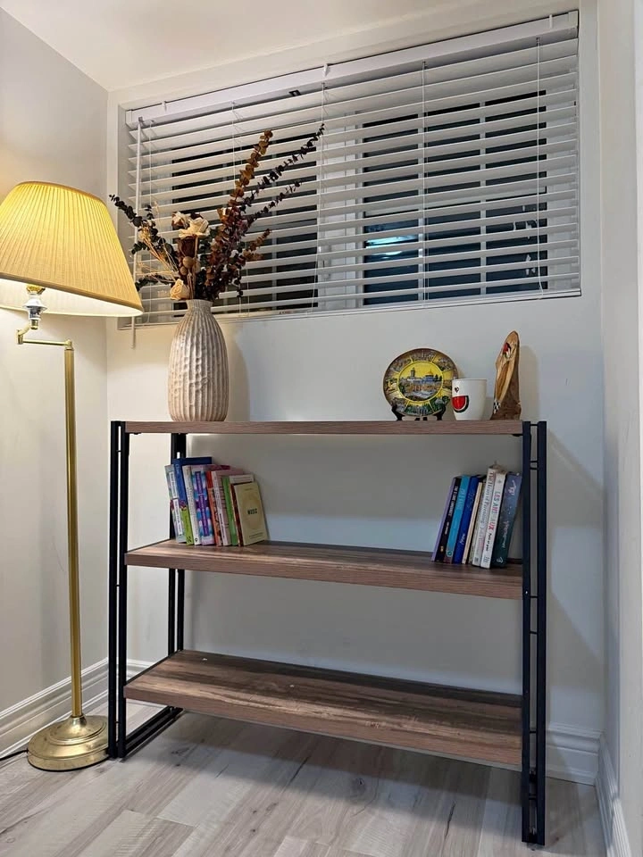 Walnut 3-Tier Industrial Metal and Wood Bookshelf