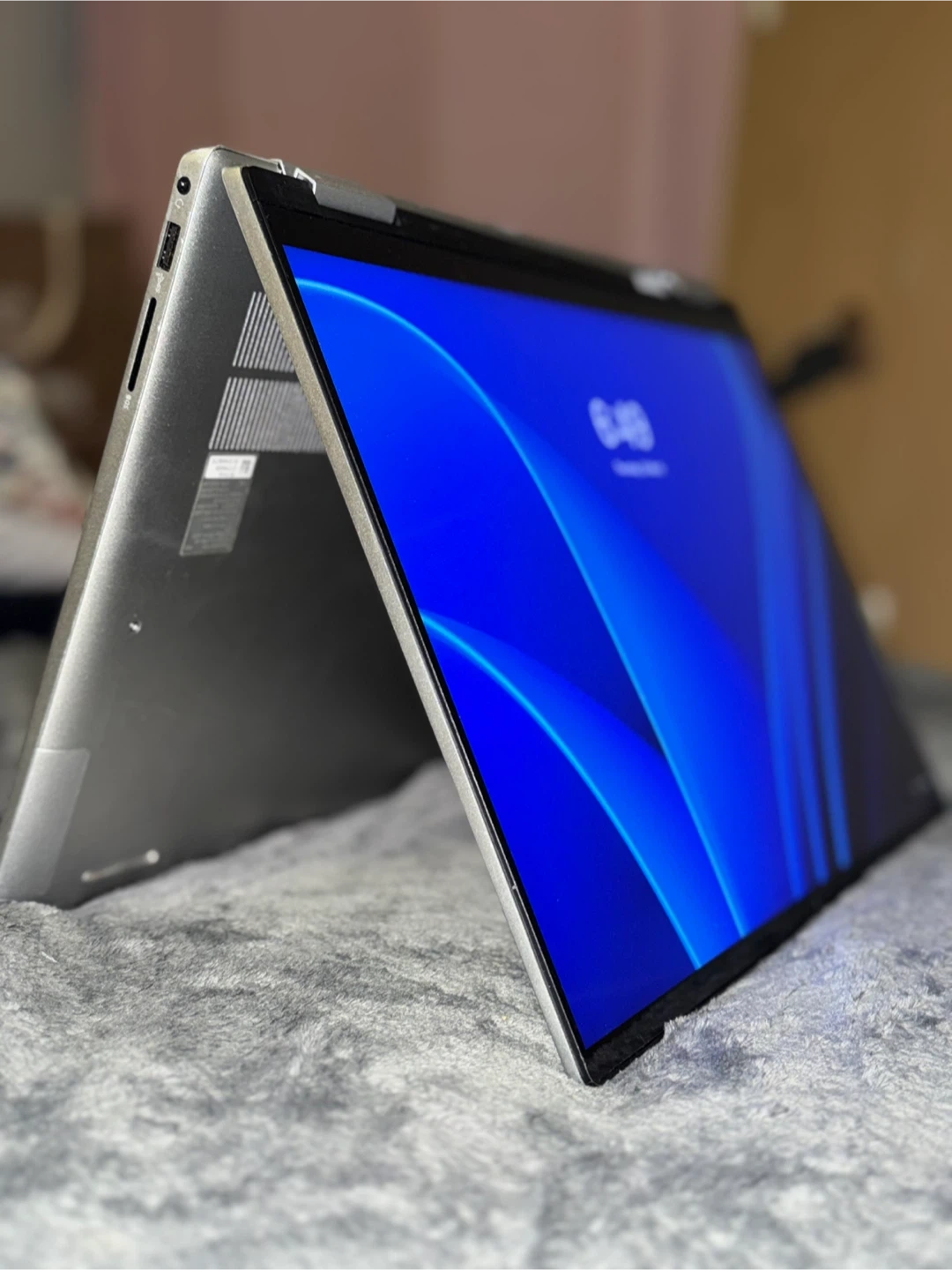 This is a Dell Inspiron 2-in-1 convertible laptop. It's a versatile device that can be used as a traditional laptop or a tablet. The screen displays Windows 11.