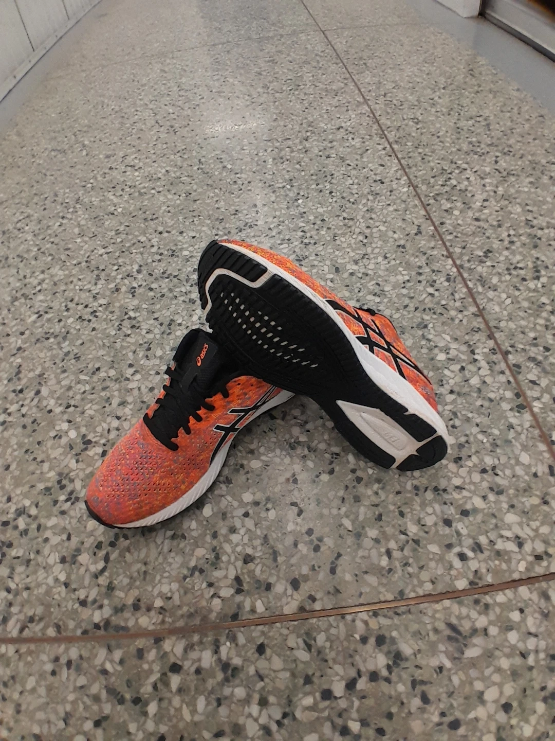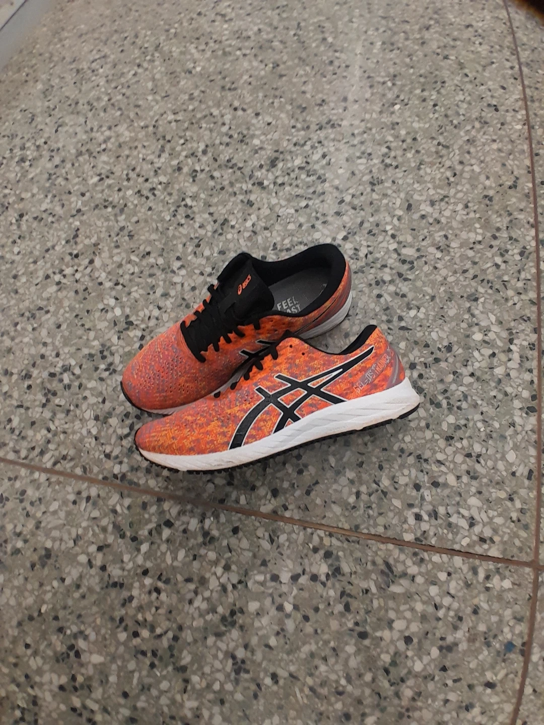 ASICS running shoes in a vibrant orange colour. Designed for performance and comfort women's size 8.5