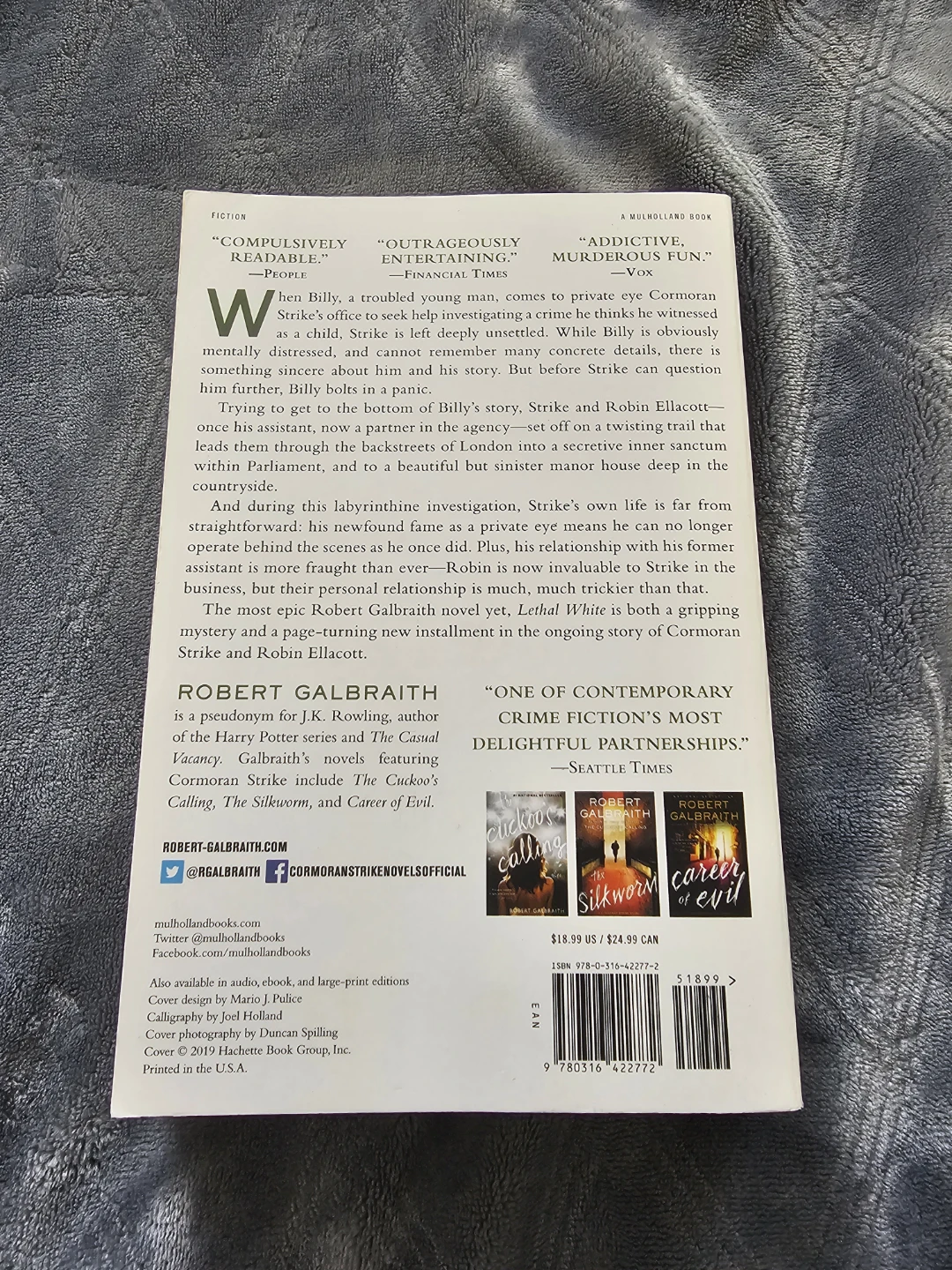 1 / 31 / 3Buy & Selllethal white | Robert Galbraith πlethal white | Robert Galbraith π$9DECLUTTERING SALE #1 NATIONAL Bestseller FINAL SALE Accepting cash only please ConditionGoodWHERE TO MEETSheridan CentreView MapSELLERverifiedKhushbuSheridan Park93896 reviews0 chatsΒ·1 favoritesΒ·2 viewsSEND CHAT TO SELLERHi Khushbu! Iβm interested in your listing.Hi Khushbu! Iβm interested in your listing.Get the Karrot app to chatSign In to chat
