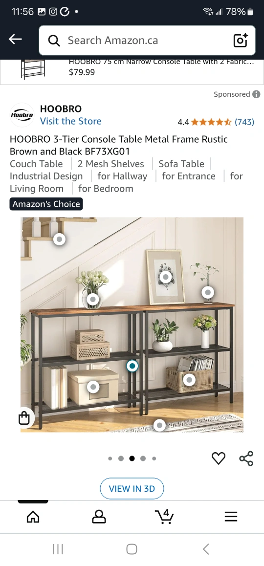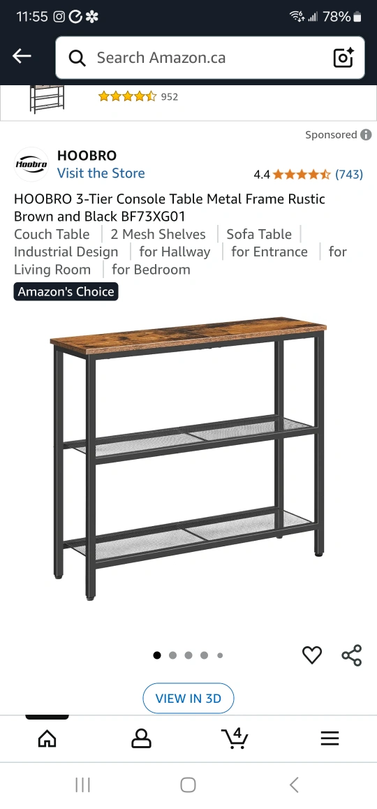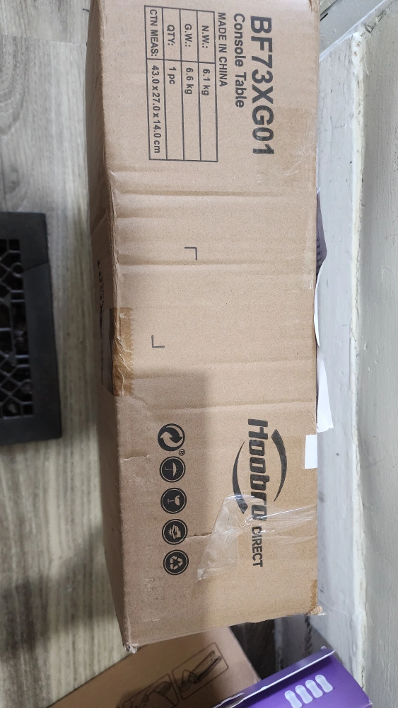 Selling a HOOBRO 3-Tier Console Table, model BF73XG01! It features a metal frame and a rustic brown finish. Perfect as a sofa table, for hallways, living rooms, or bedrooms. The box is included!