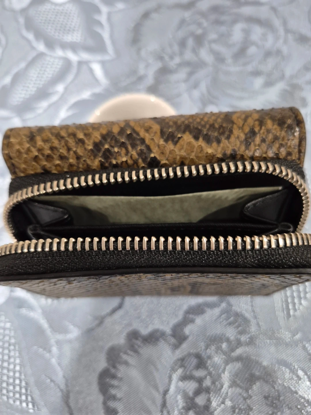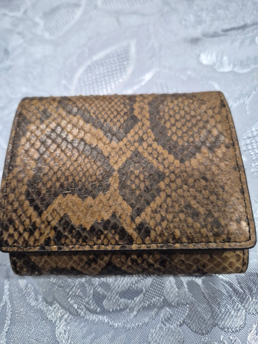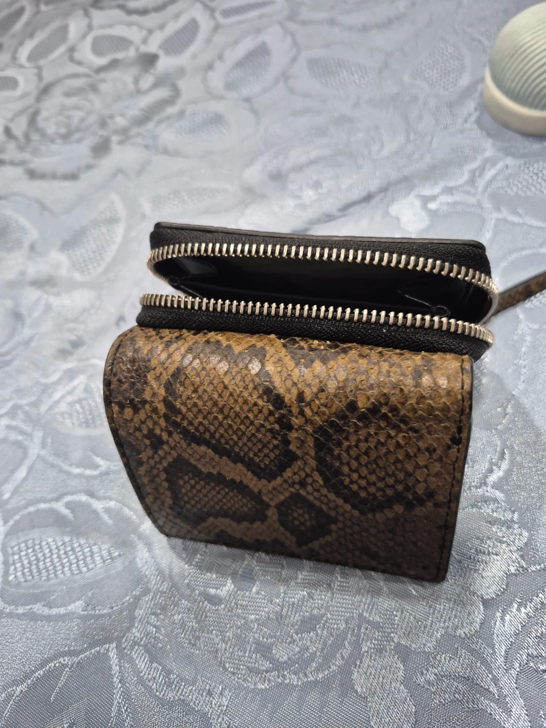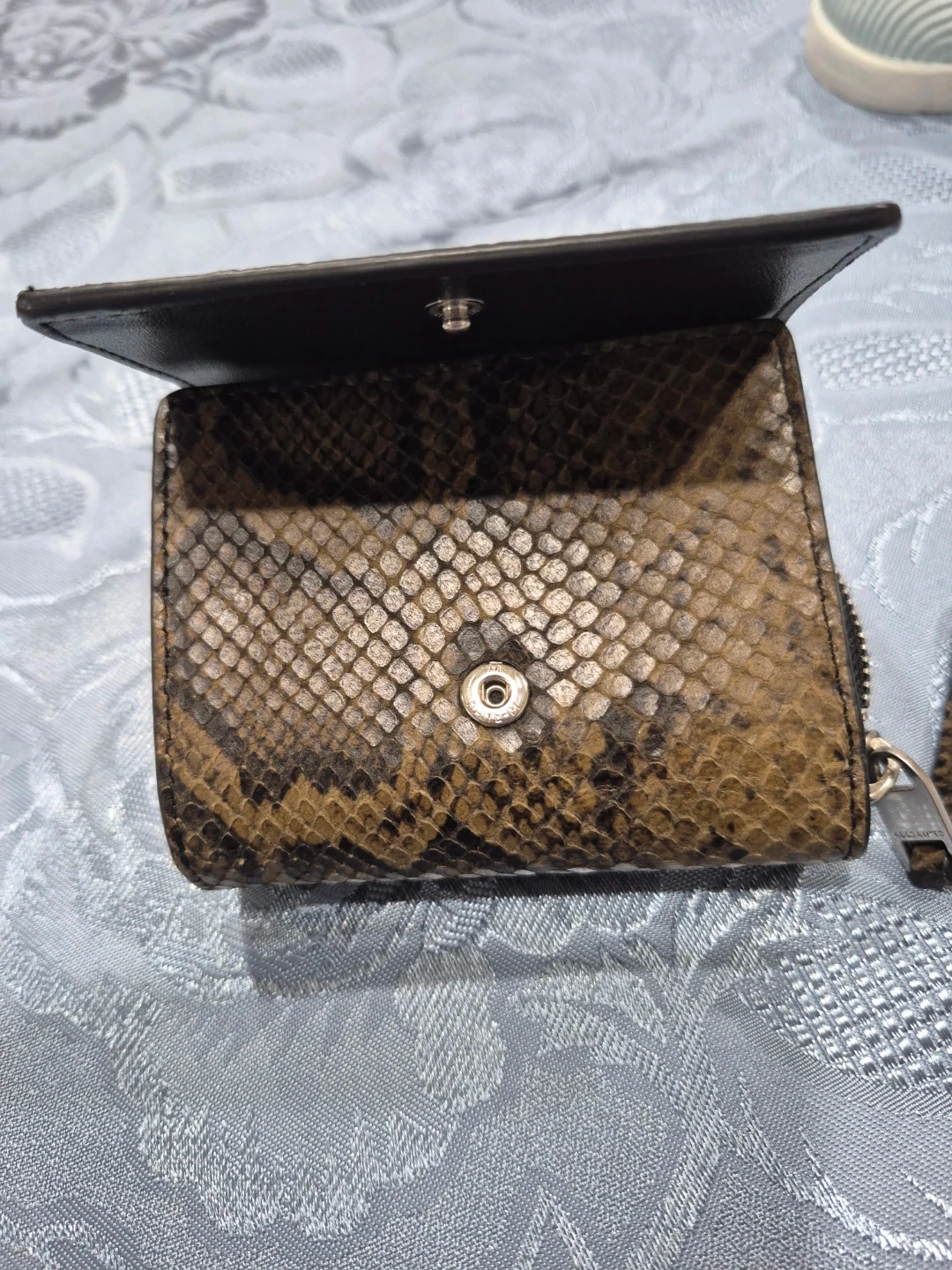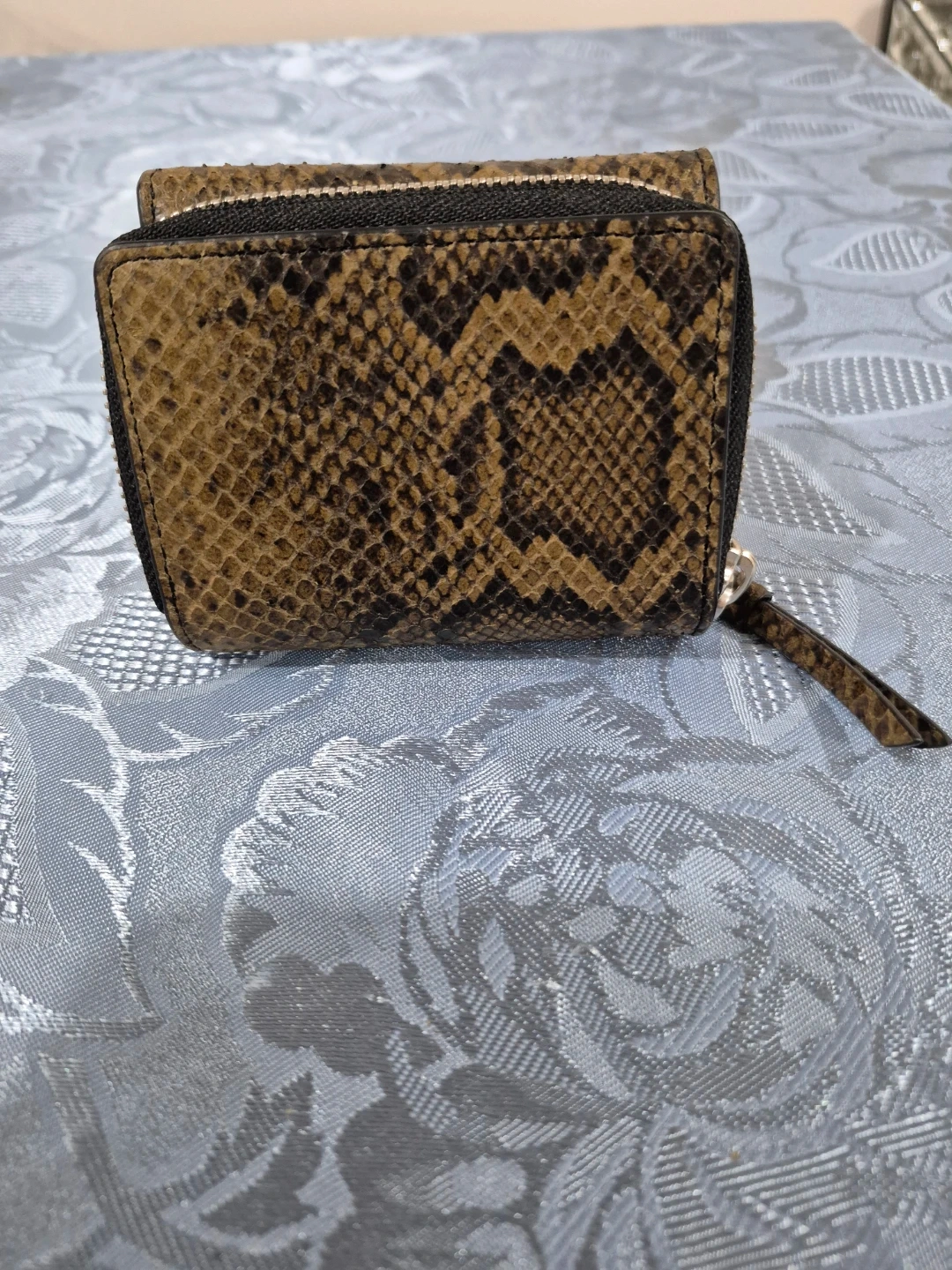 This is an Allsaints wallet with a snakeskin pattern. It's in great condition and has a zipper compartment as well as a snap closure. Perfect for everyday use!