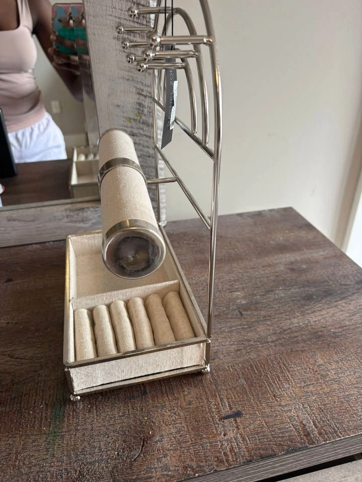 Buy & SellRachel Zoe Brand Jewelry OrganizerRachel Zoe Brand Jewelry Organizer$20It features a chrome finish with a beige linen-like fabric lining and a cylindrical bar for hanging necklaces, rings or bracelets.WHERE TO MEETWalmart Fanshawe Park RoadView MapSELLERverifiedOlaHyde Park620 reviews0 chats·2 favorites·22 viewsSEND CHAT TO SELLERHi Ola! I’m interested in your listing.Hi Ola! I’m interested in your listing.Get the Karrot app to chatSign In to chat