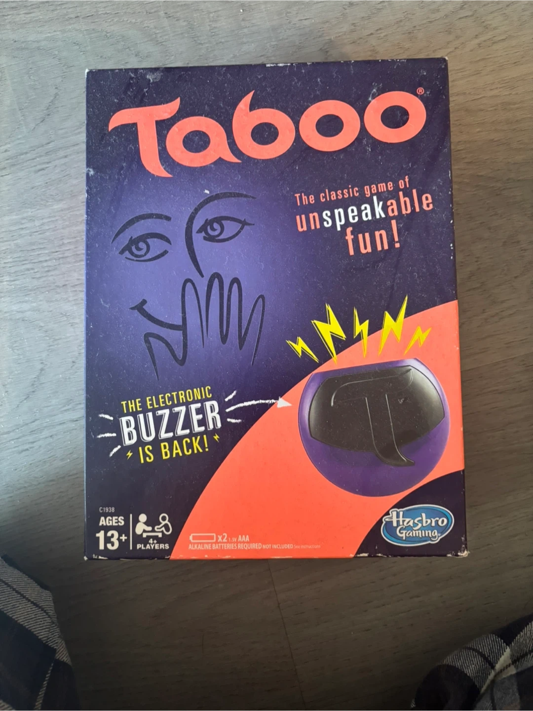 The classic game of unspeakable fun! This edition features the electronic buzzer. It's for ages 13+ and 4+ players. Alkaline batteries required, not included.