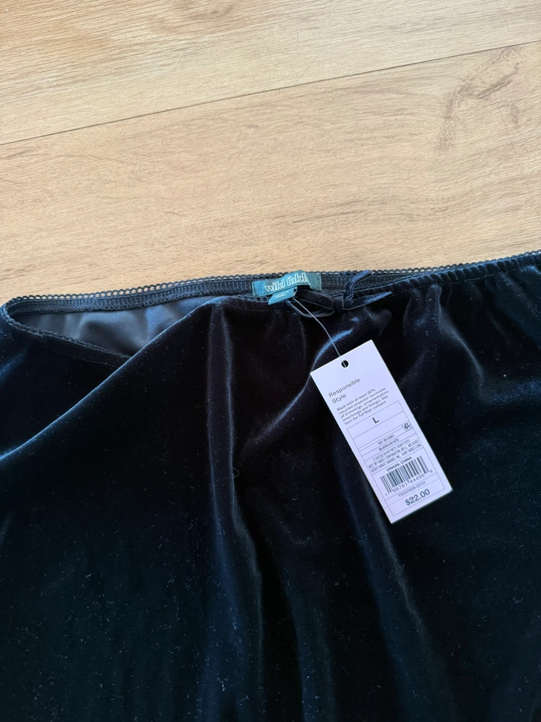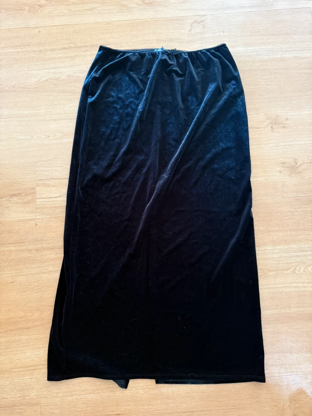 Selling a Wild Fable black velvet skirt in size L. It's never been used and ready for a new home! The skirt has a stylish slit at the back and a comfortable elastic waistband.