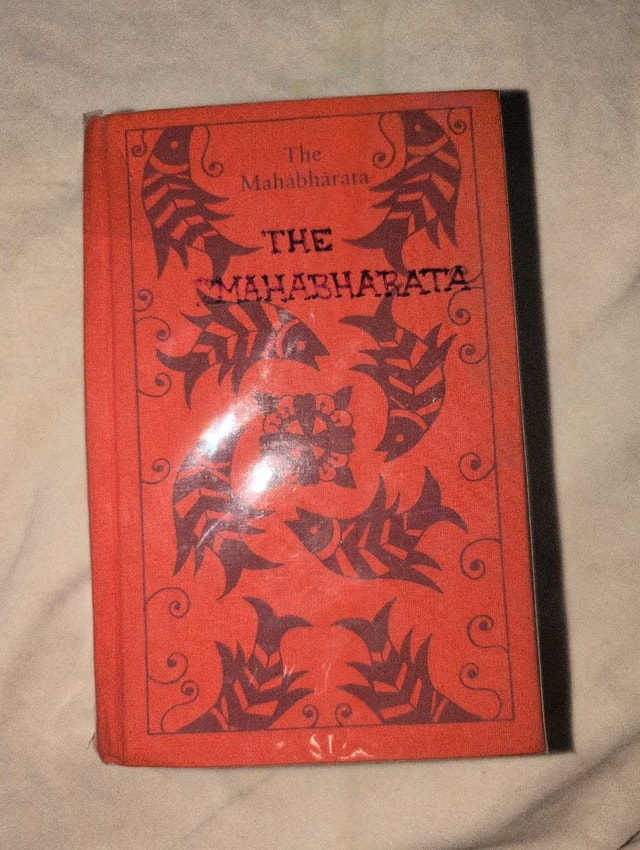 This is a used copy of The Mahabharata, a book which presents an epic narrative of the Kurukshetra War and the fates of the Kaurava and Pandava princes. Its condition is good, with some wear visible on the cover, befitting its age and history. If you're seeing this ad, the item is still available.