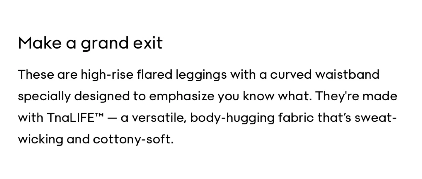 - Made with TnaLIFE™ fabric, which is sweat-wicking and cottony-soft