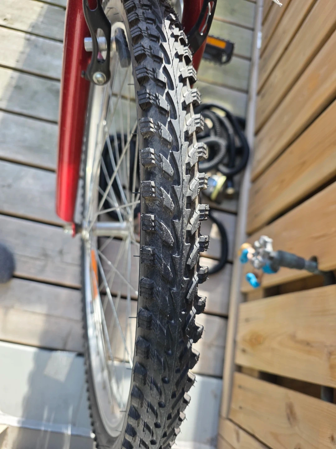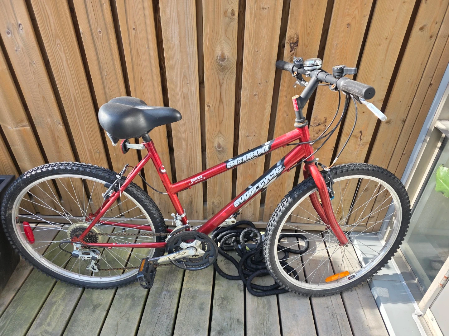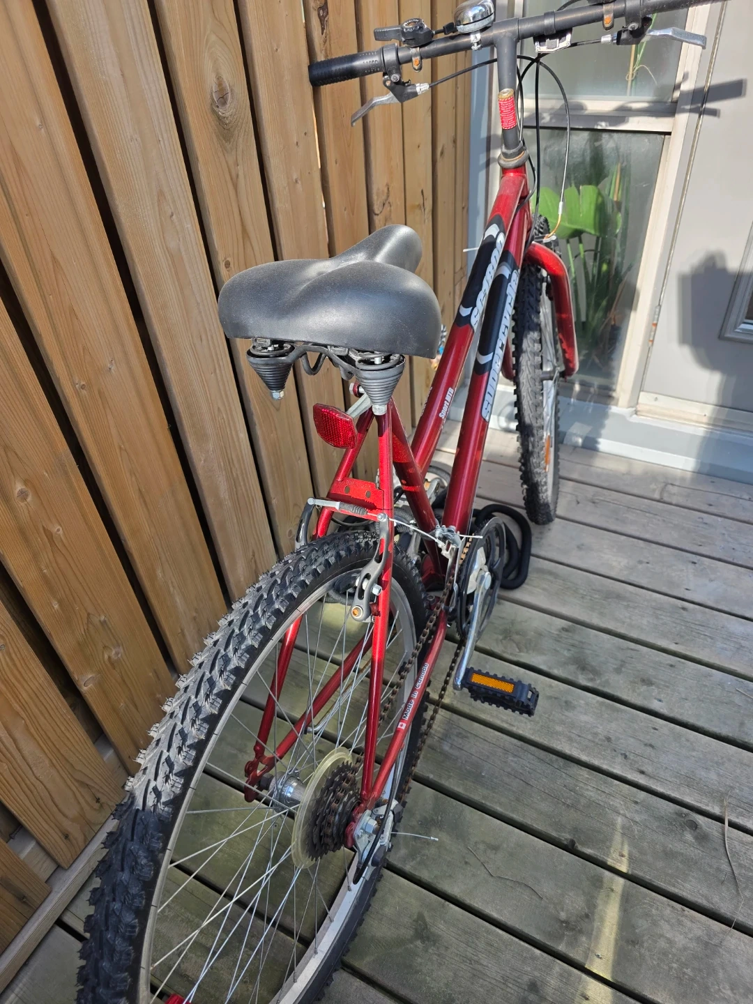 This red Schwinn Sidewinder mountain bike is ready for your next adventure. It features knobby tires for off-road grip and a comfortable saddle. Great for trails or casual rides!