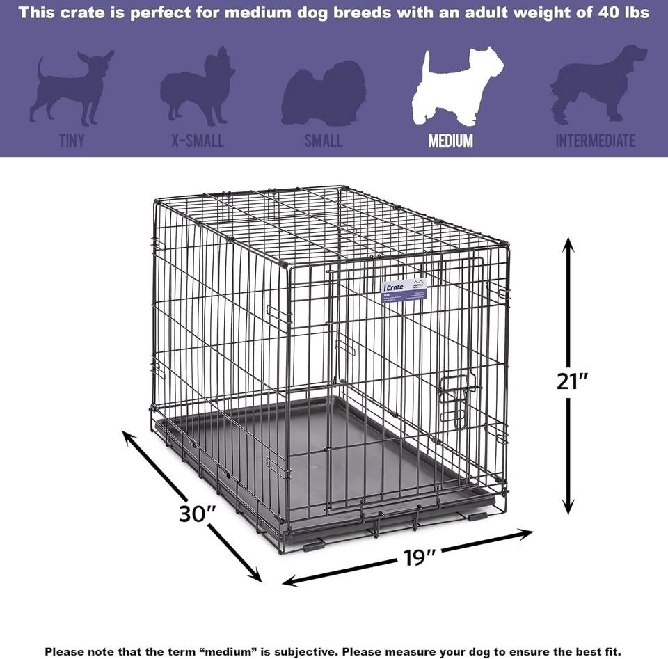 For Pets 30-Inch iCrate for Medium Breeds, 21-40 lbs, Single Door Folding Dog Crate with Divider Panel, Leak-Proof Tray & Secure Latch, Portable, Durable & Easy to Assemble. Crate cover is included.