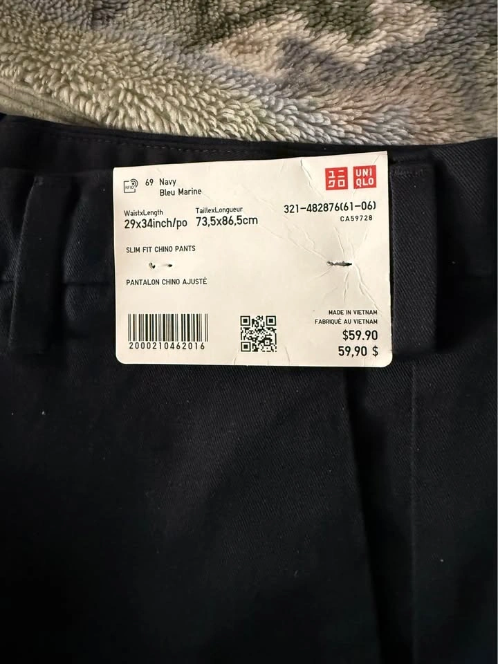 Selling a pair of UNIQLO slim fit chinos in 69 navy.