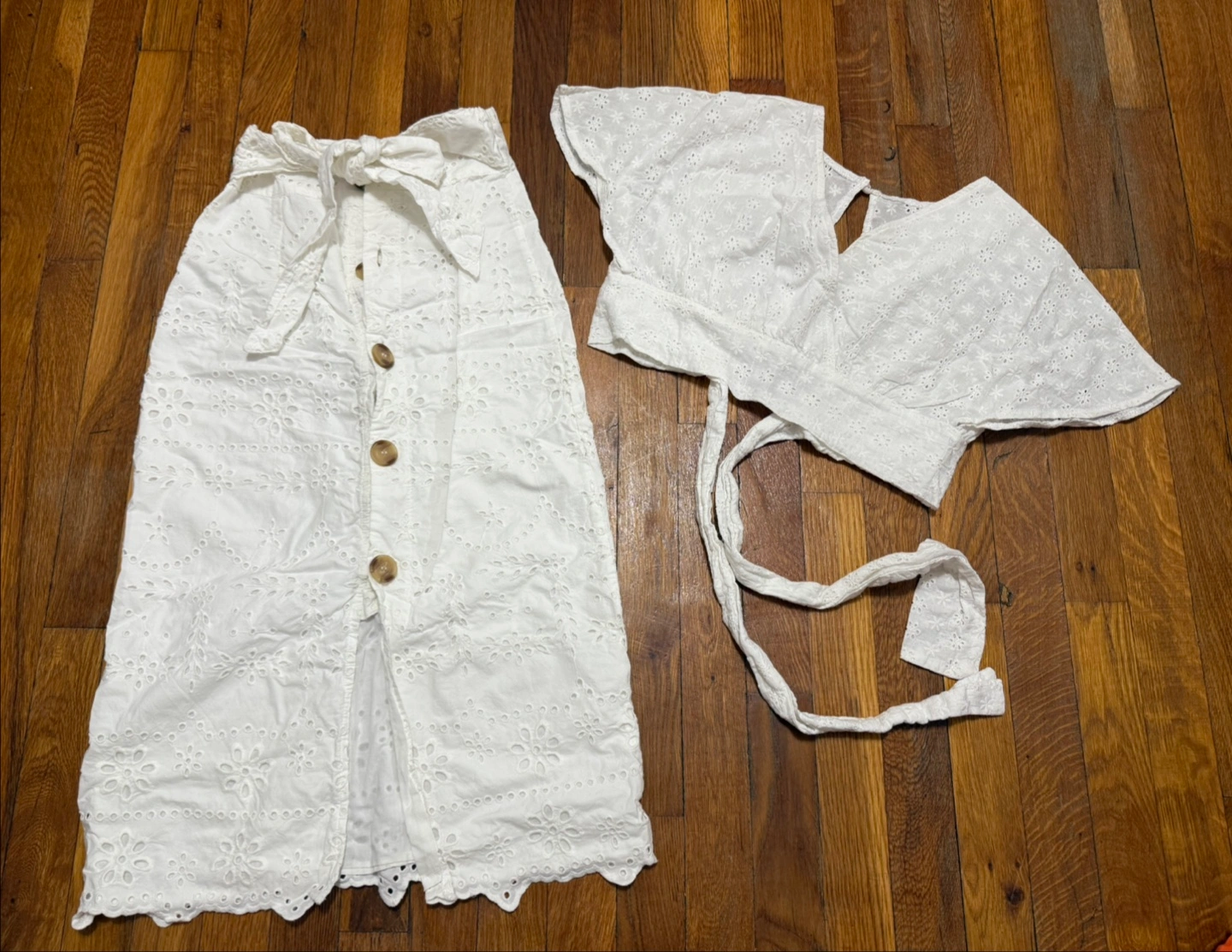 White Eyelet Crop Top and Midi Skirt Set π€π€