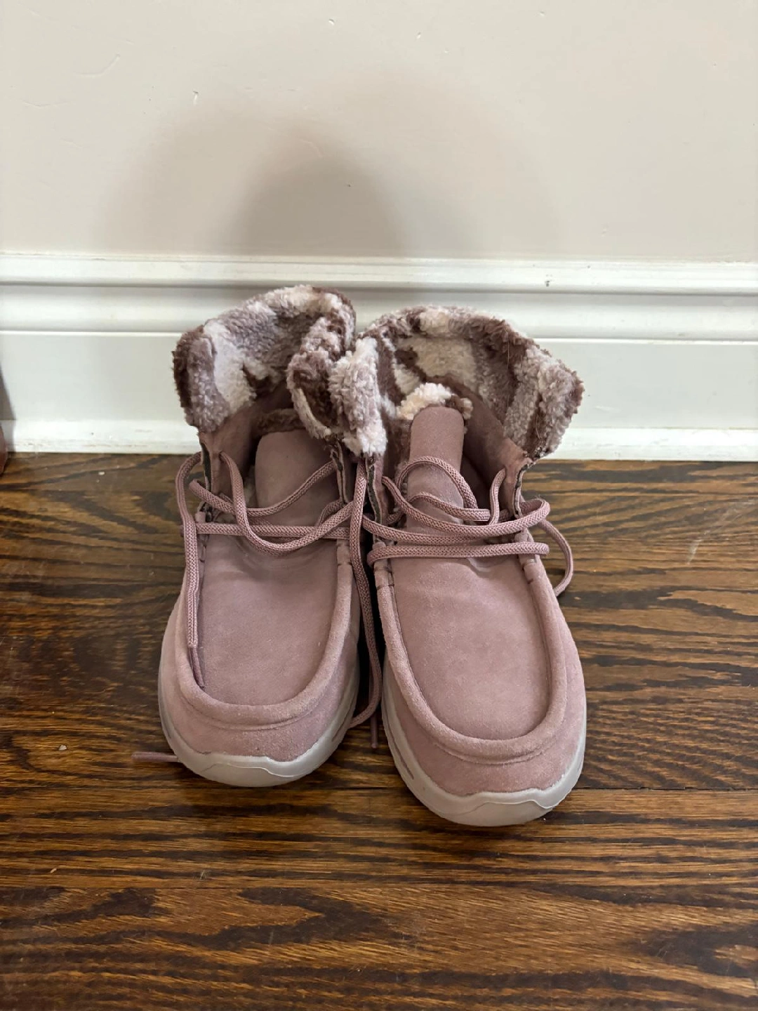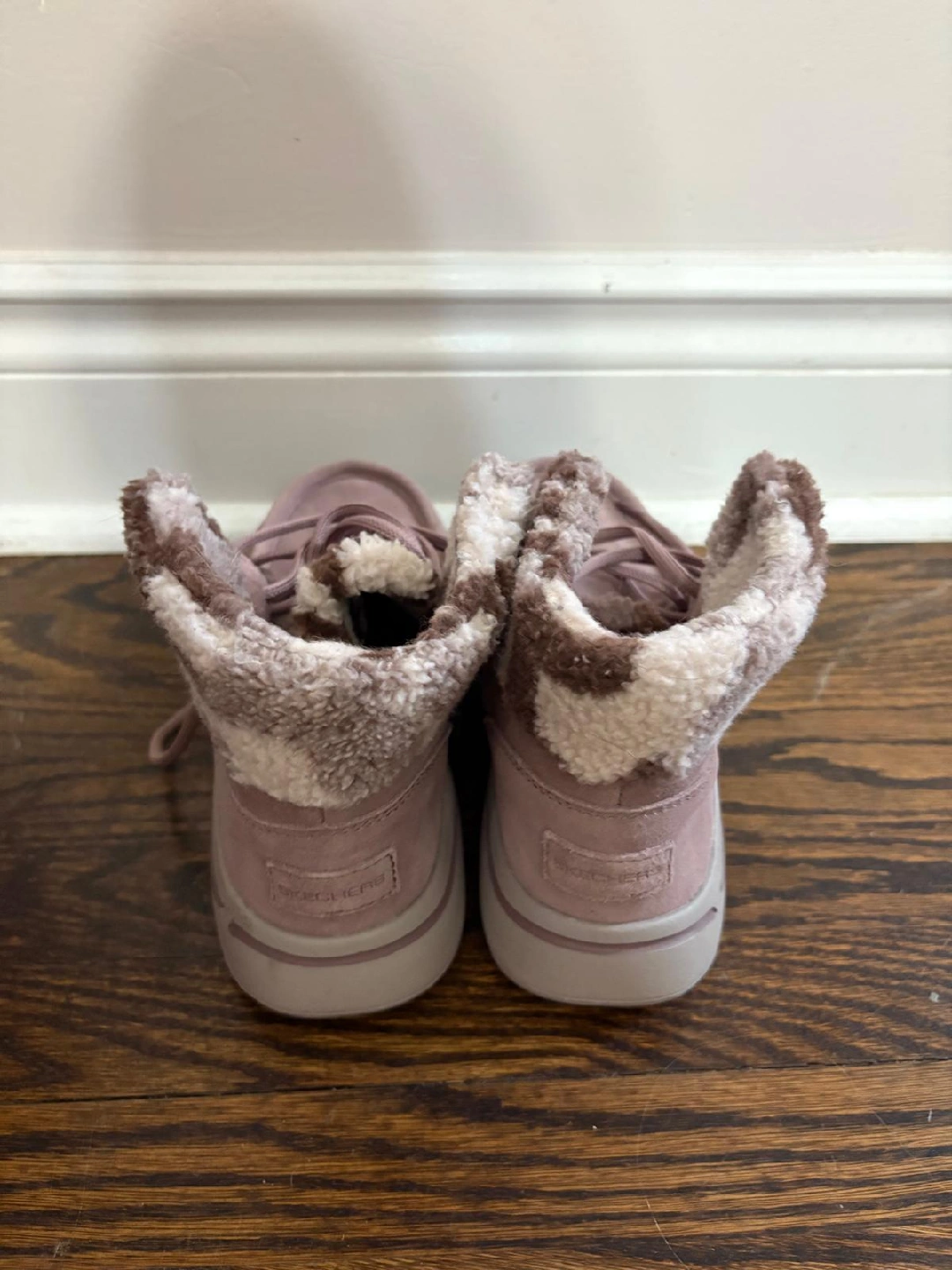 Selling a pair of Skechers Arch Fit slipper shoes in size 6.5. They feature a leather and textile faux fur upper and lining. The shoes are in great condition and ready for a new home! Pick up Mississauga Area or Brampton Area