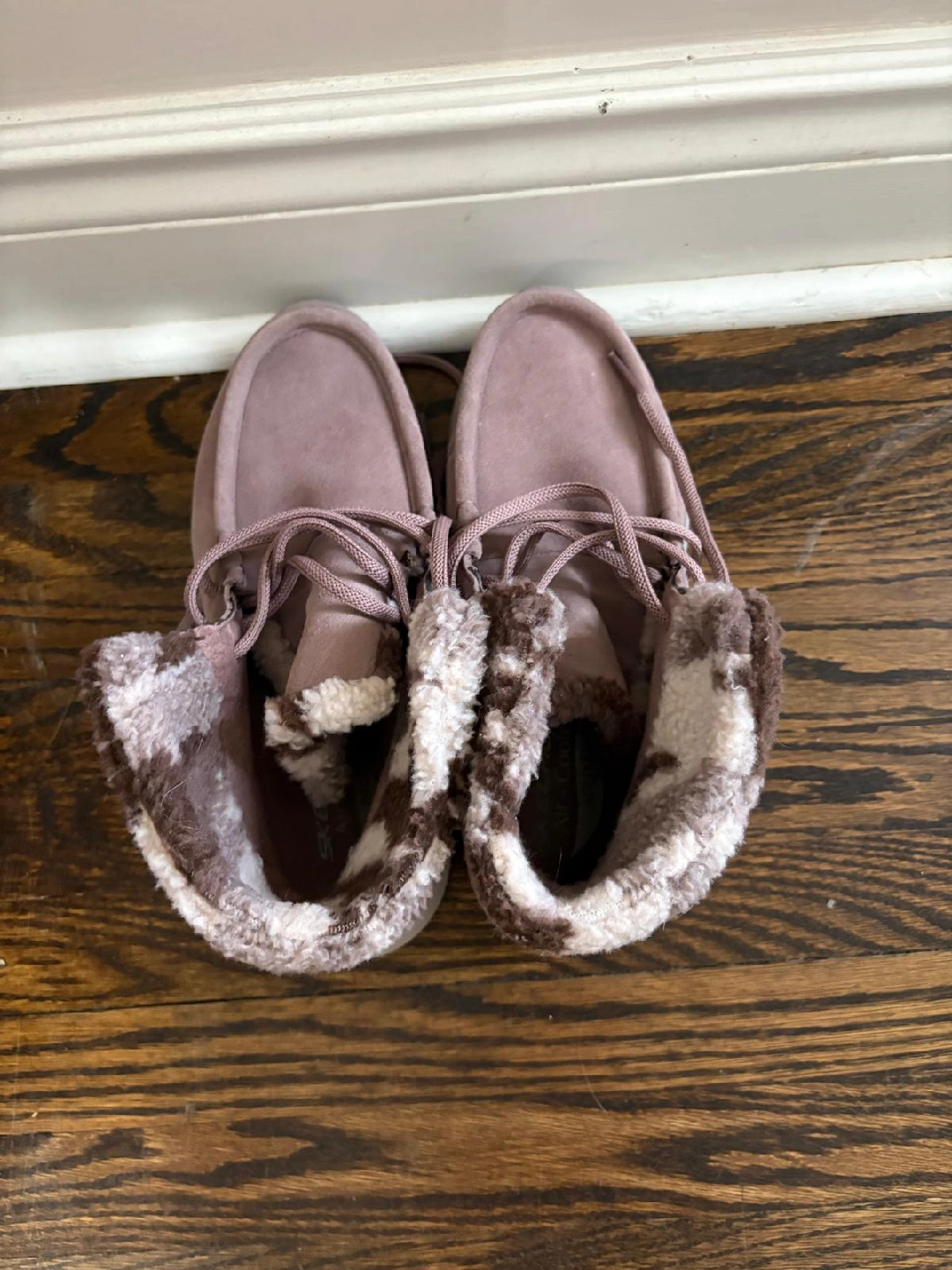 Selling a pair of Skechers Arch Fit slipper shoes in size 6.5. They feature a leather and textile faux fur upper and lining. The shoes are in great condition and ready for a new home! Pick up Mississauga Area or Brampton Area