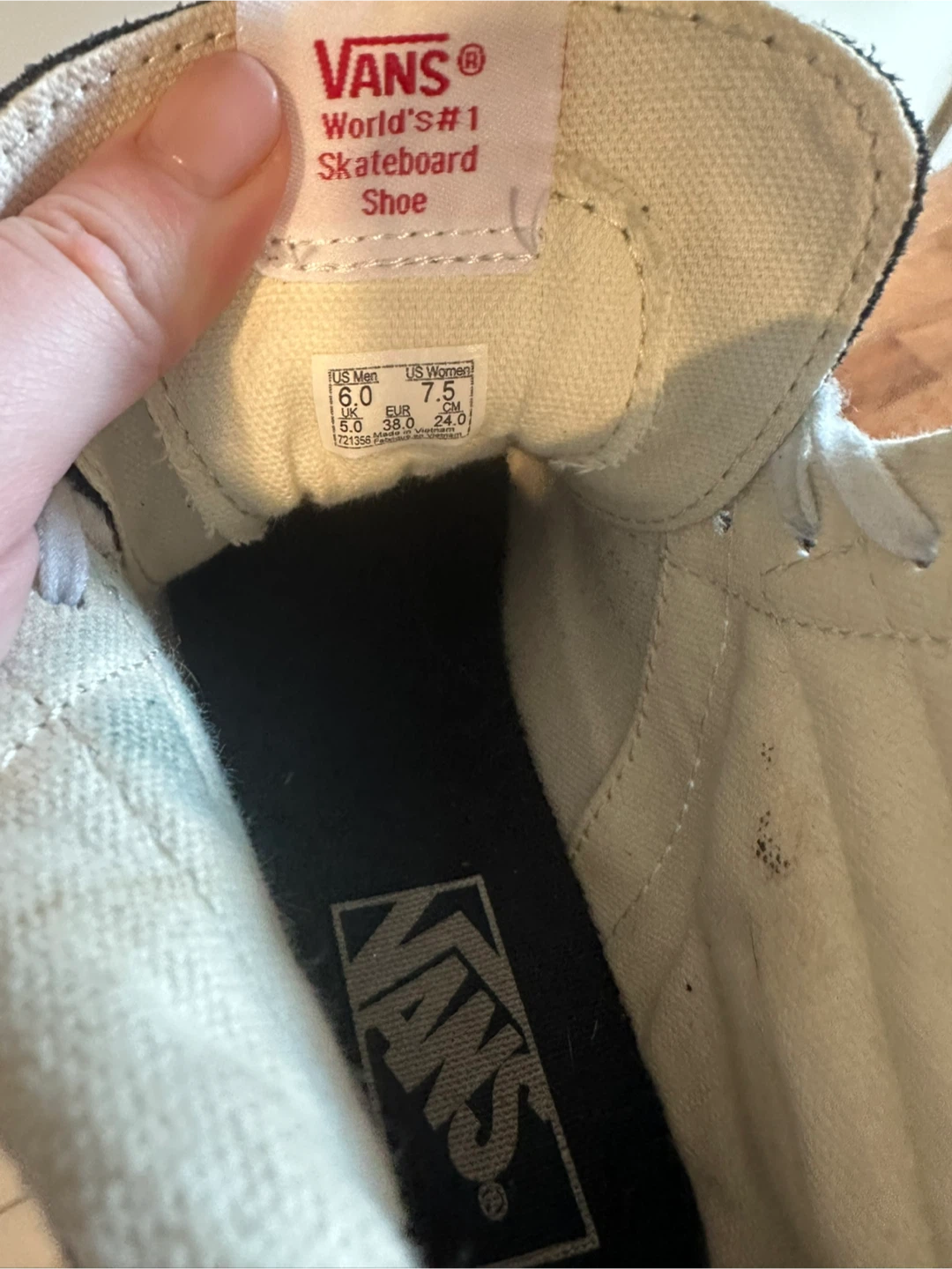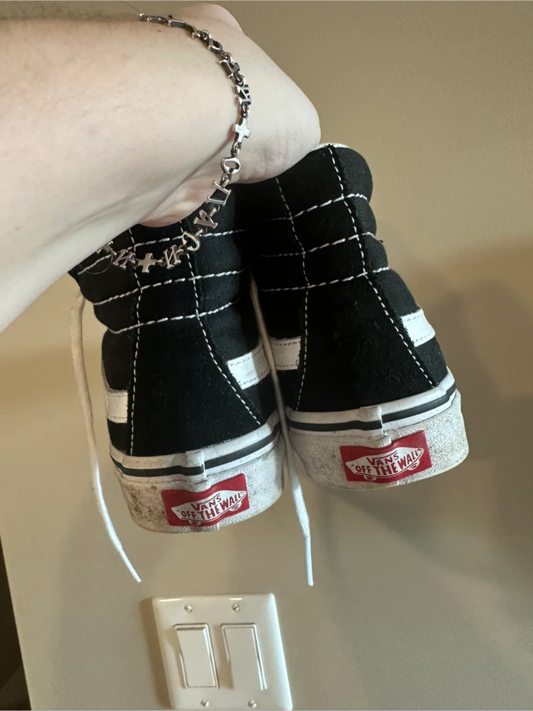 Classic black and white Vans Sk8-Hi high-top sneakers. Suede and canvas upper. These shoes are known for their durable construction and iconic style. Great for everyday wear! Great used condition. Cash only, pick up downtown only.