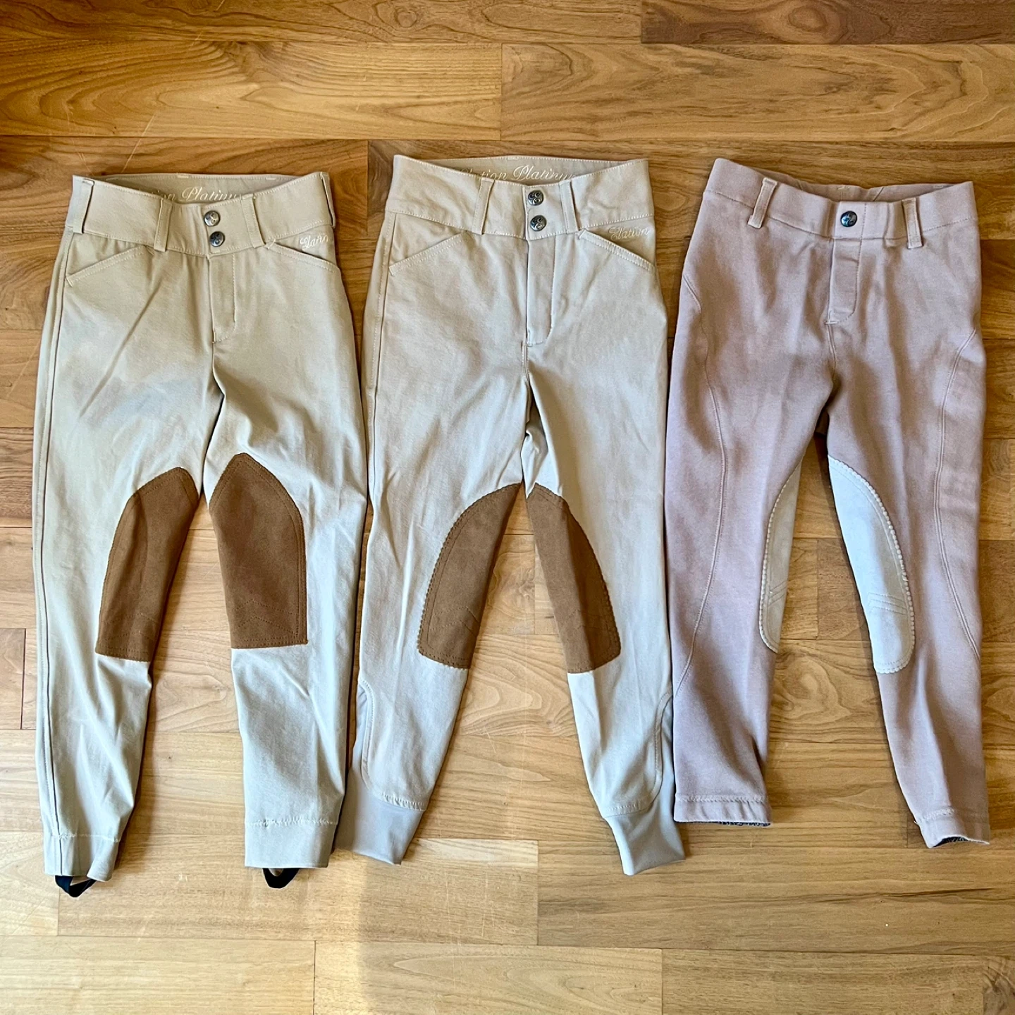 3 pairs of Elation Platinum kids riding breeches, in excellent condition. Perfect for the equestrian enthusiast looking for quality and comfort in the saddle.