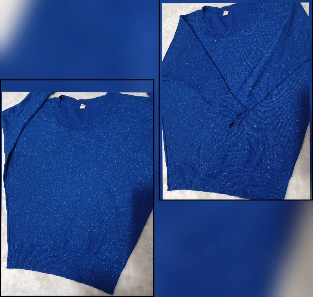 A lovely blue sweater with a subtle sparkle! It's in great condition and ready for a new owner. Perfect for adding a touch of shimmer to your everyday look