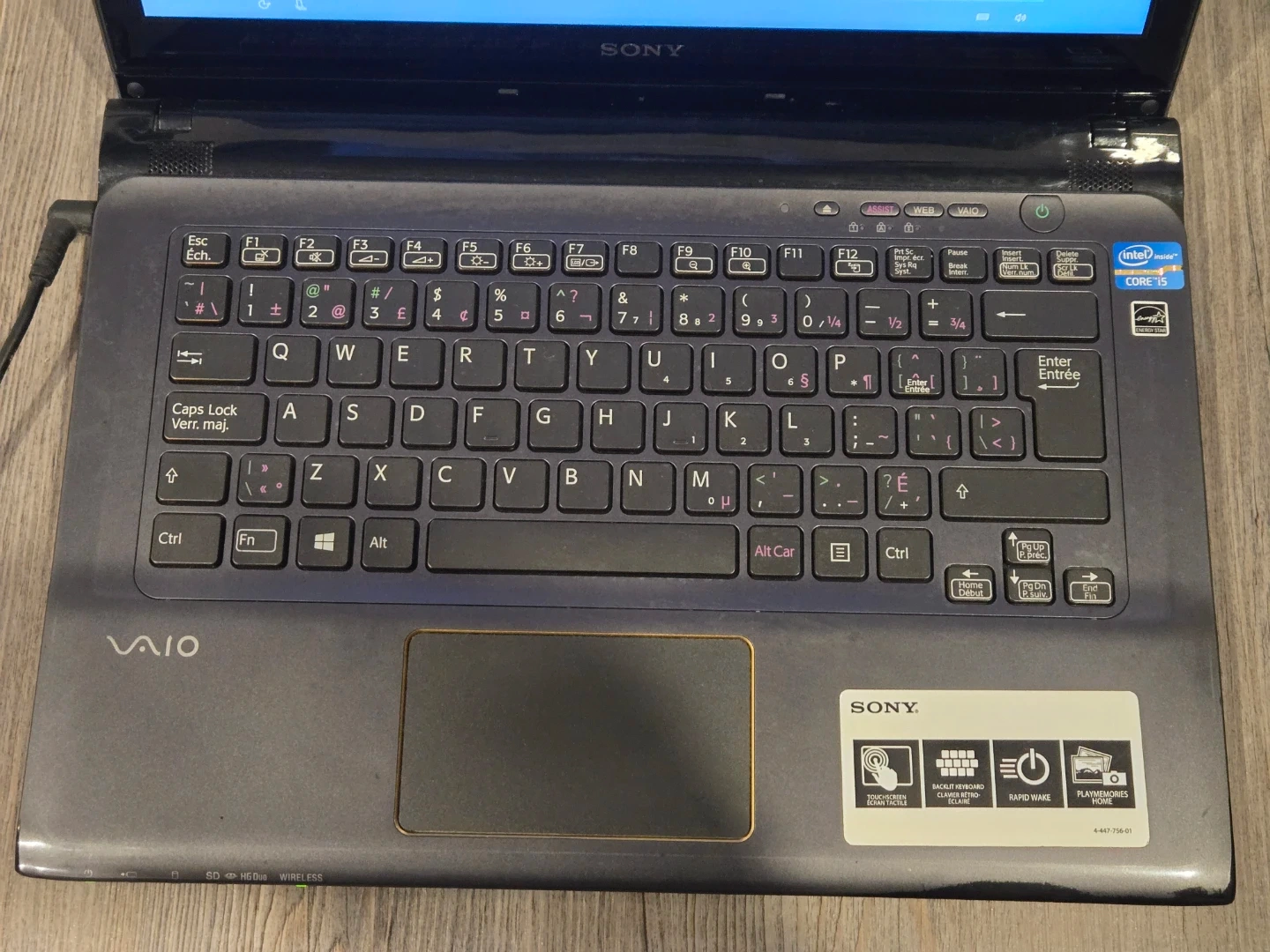 This Sony VAIO laptop features a touchscreen and a backlit keyboard. It's equipped with an Intel Core i5 processor. Rapid wake function is included.