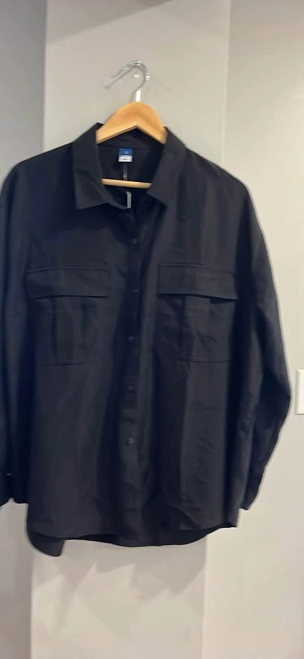 New Old Navy black button up shirt. Size XL. Has two chest pockets. Super versatile for layering or wear it on its own. Still has tags on.