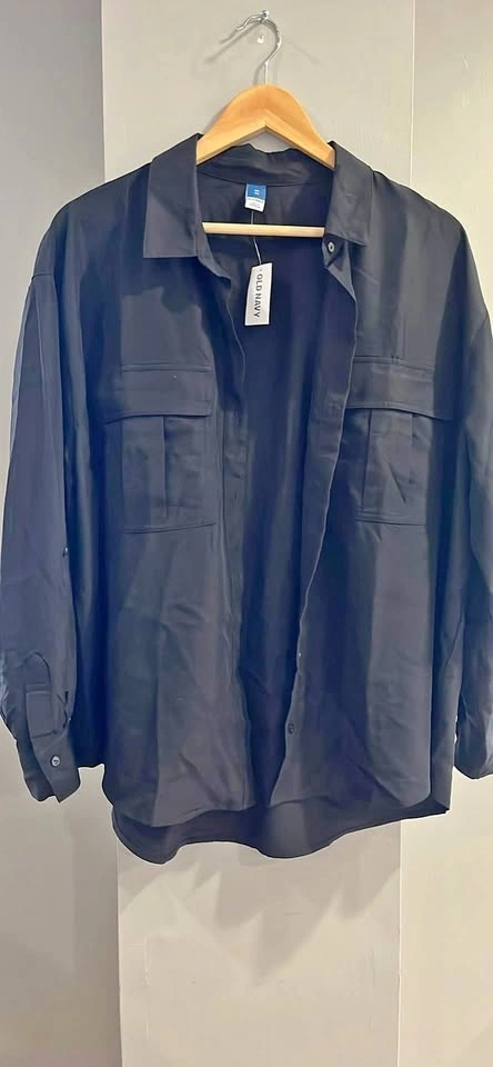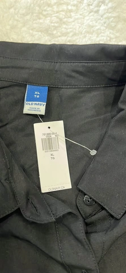 New Old Navy black button up shirt. Size XL. Has two chest pockets. Super versatile for layering or wear it on its own. Still has tags on.