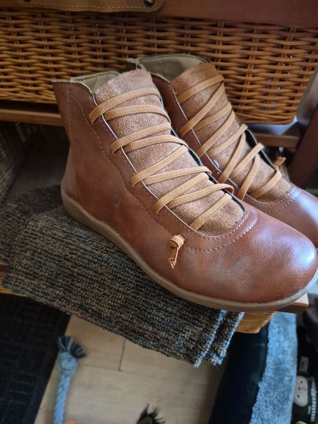 These brown ankle boots are a stylish and practical addition to any wardrobe. They feature a comfortable design with both laces and a side zipper for easy wear. The rich brown colour pairs well with many outfits.