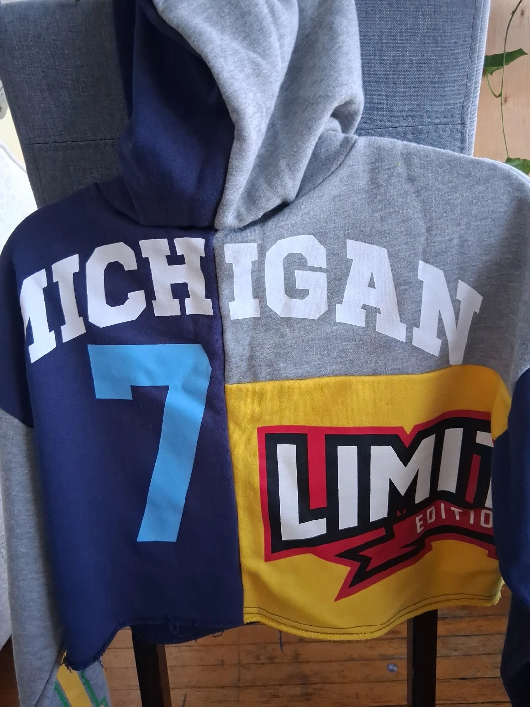 Foever 21 Colourful patchwork hoodie with "Michigan" and "Limited Edition" graphics. Features a "5" and "7" on the front. Made for a unique look! Cropped Hoodie
