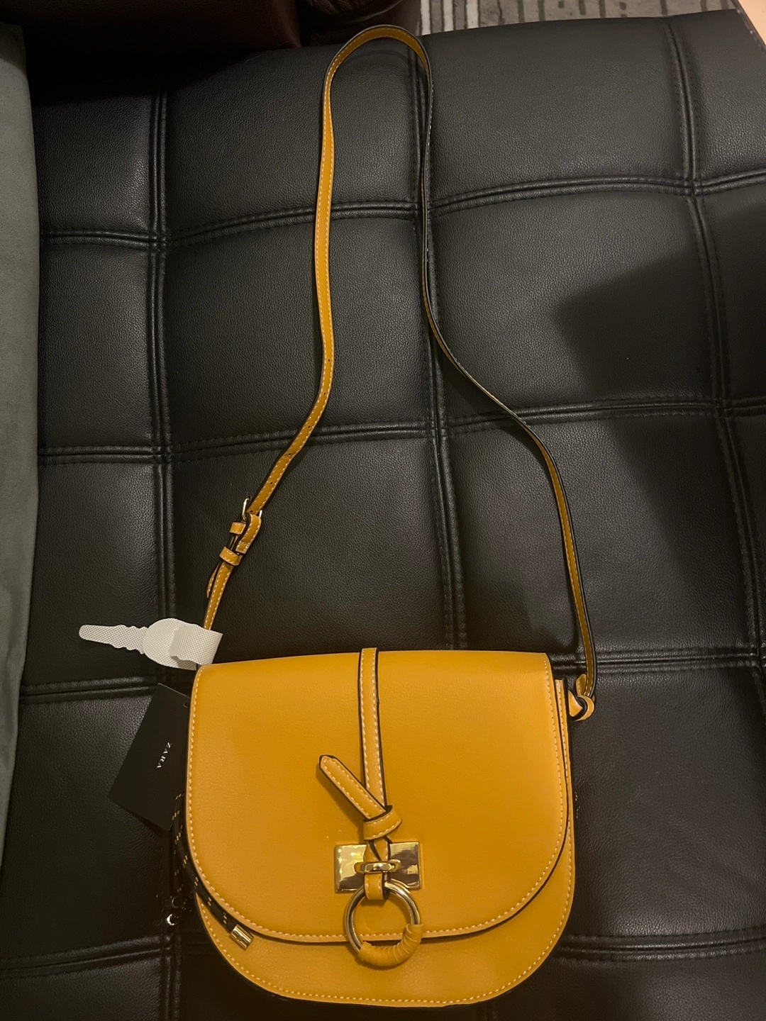 Selling a cute Zara crossbody bag in mustard yellow! It's in great condition and perfect for everyday use. The bag features a crossbody strap and a unique ring design on the front. It's a stylish and practical accessory to add to your collection