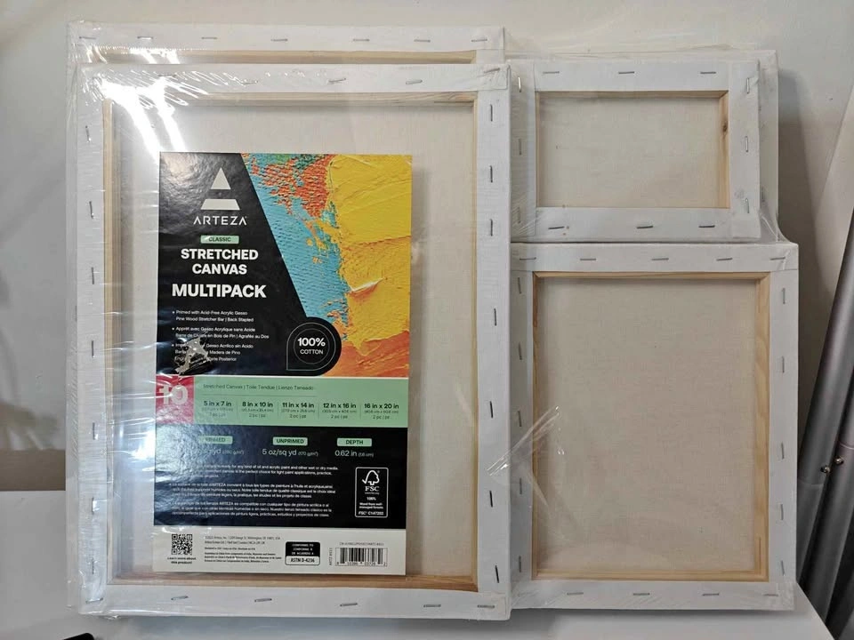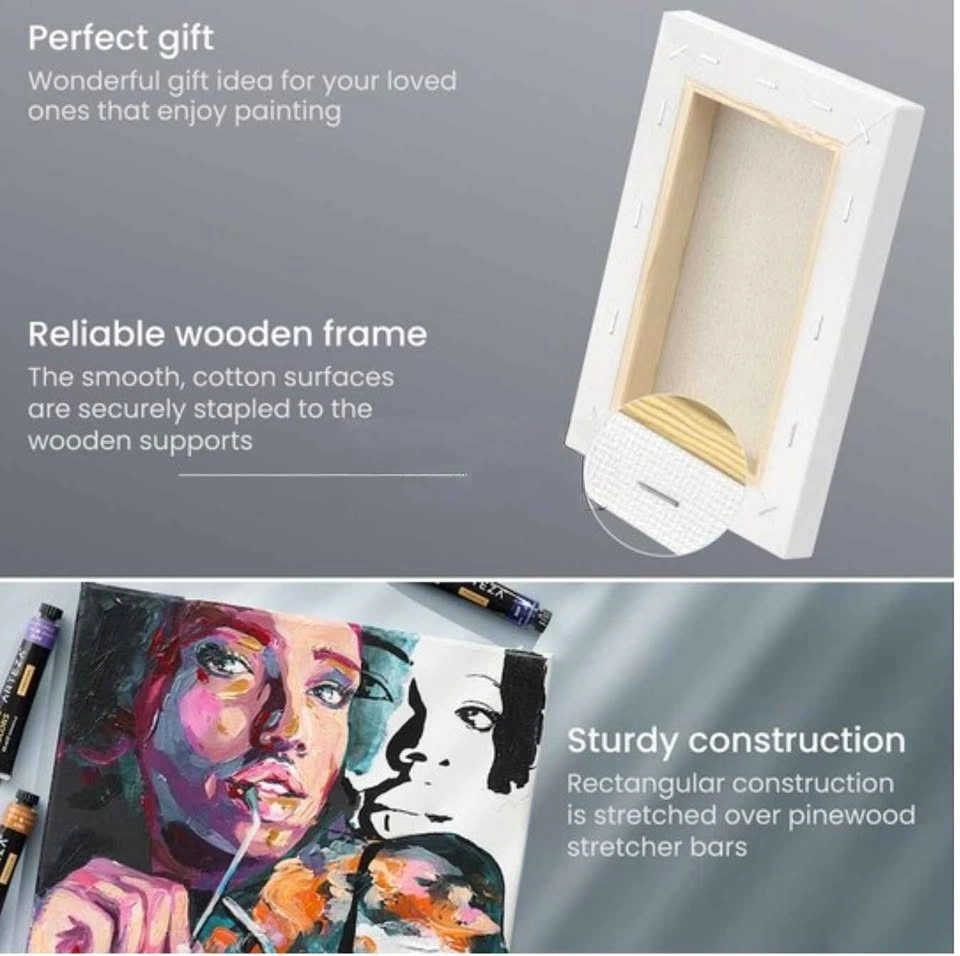 Invest in your craft with an assortment of well-crafted Stretched Canvases of varying sizes. This multipack of 10 Stretched Canvases makes a wonderful set for anyone just learning how to paint as well as versed painters. Since this pack of canvases includes five different sizes of blank stretched canvases to work with, artists are invited to experiment with scale, compisition, and different techniques. For the ultimate variety set of blank stretched canvases, supply yourself with this Stretched Canvas Multipack!