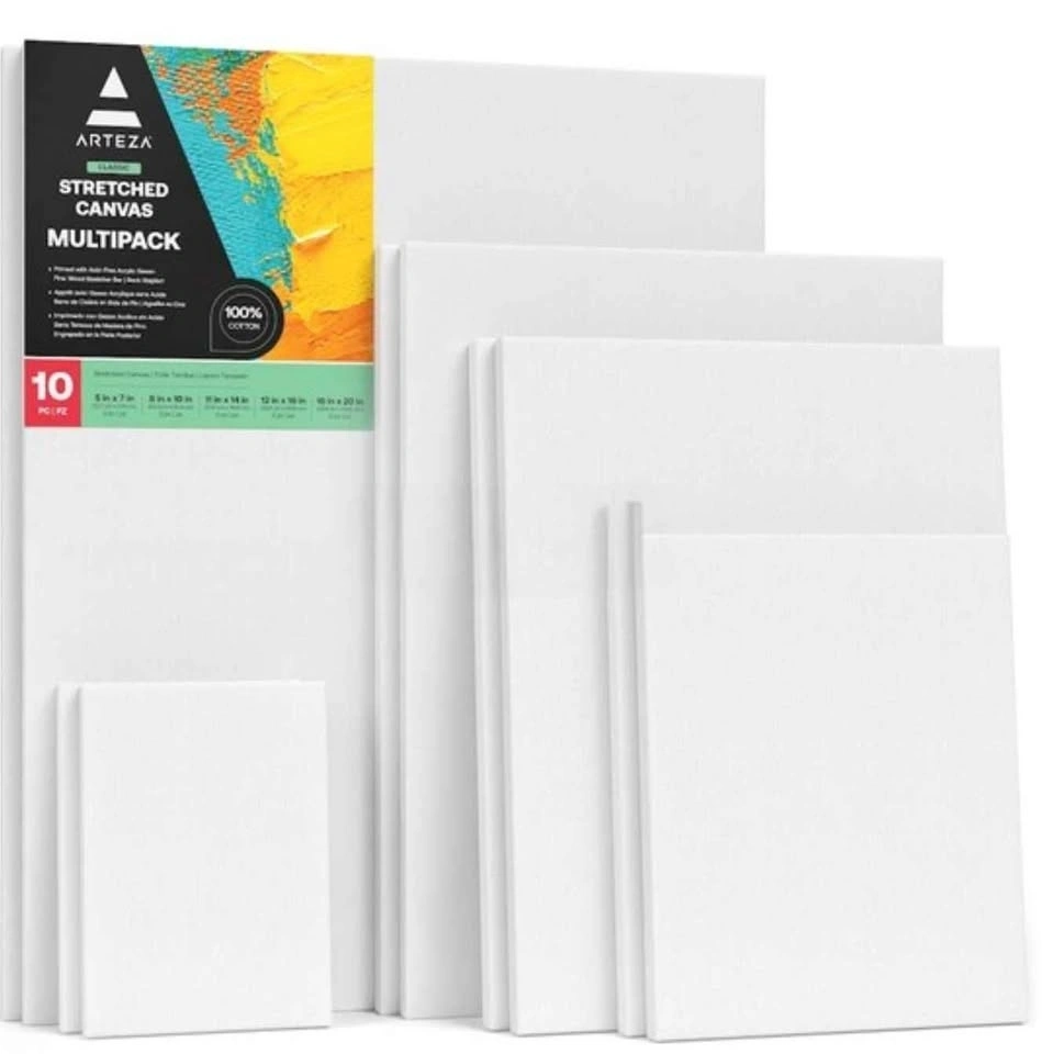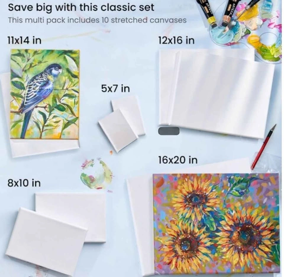 Invest in your craft with an assortment of well-crafted Stretched Canvases of varying sizes. This multipack of 10 Stretched Canvases makes a wonderful set for anyone just learning how to paint as well as versed painters. Since this pack of canvases includes five different sizes of blank stretched canvases to work with, artists are invited to experiment with scale, compisition, and different techniques. For the ultimate variety set of blank stretched canvases, supply yourself with this Stretched Canvas Multipack!
