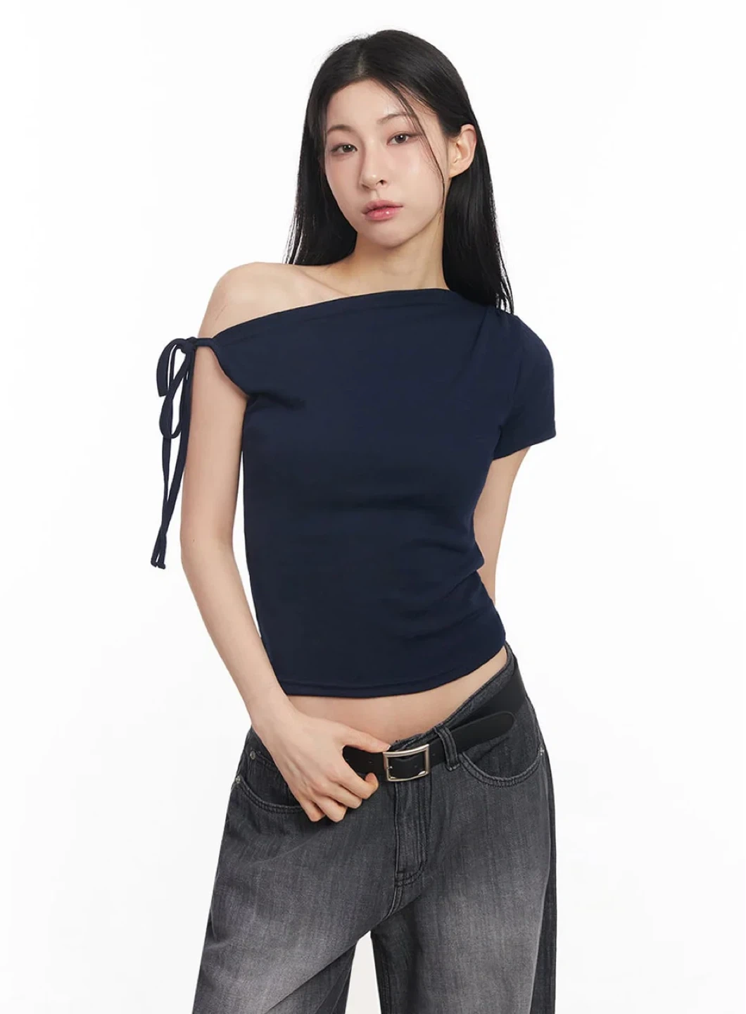 Korean shop Lewkin One-Shoulder Ribbon Top
