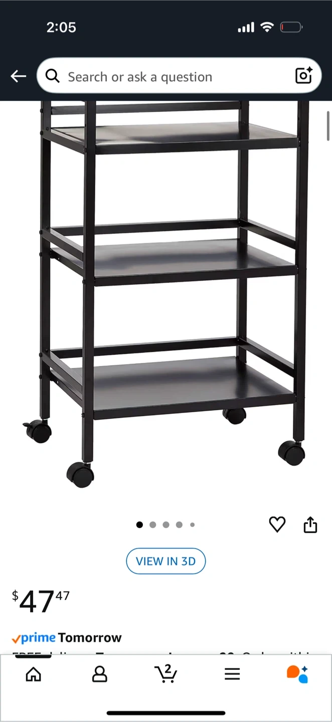 Black 3-Tier Rolling Cart