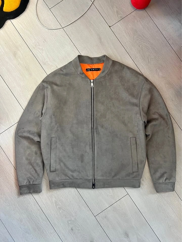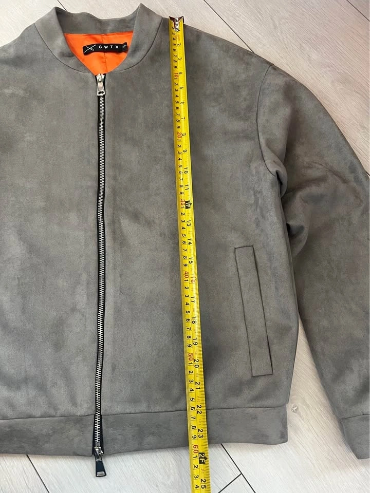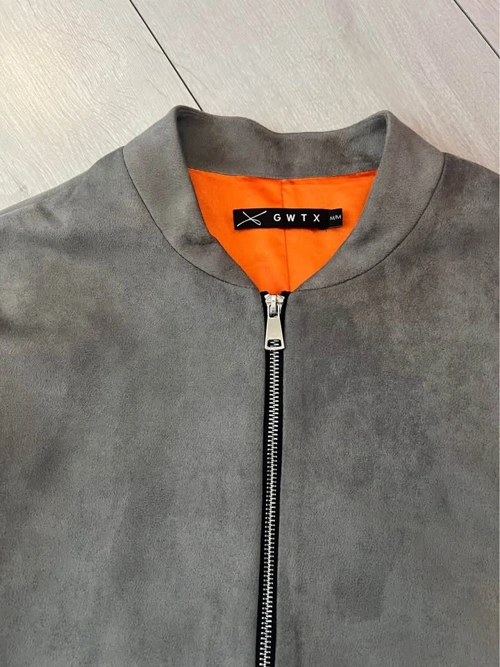 This is a GWTX jacket, a now defunct Toronto brand. It was originally purchased for $500 CAD. It features a double zipper. The jacket is labeled as a Medium but fits like a Men's Small, which is why I barely wore it as it was too tight. The exterior is a soft, short-hair suede with an orange inner lining. It's a very nice jacket, suitable for dates, the office, or casual wear. I'm sad to see it go, but it's been sitting in my closet and I can no longer fit into it. Pickup only.