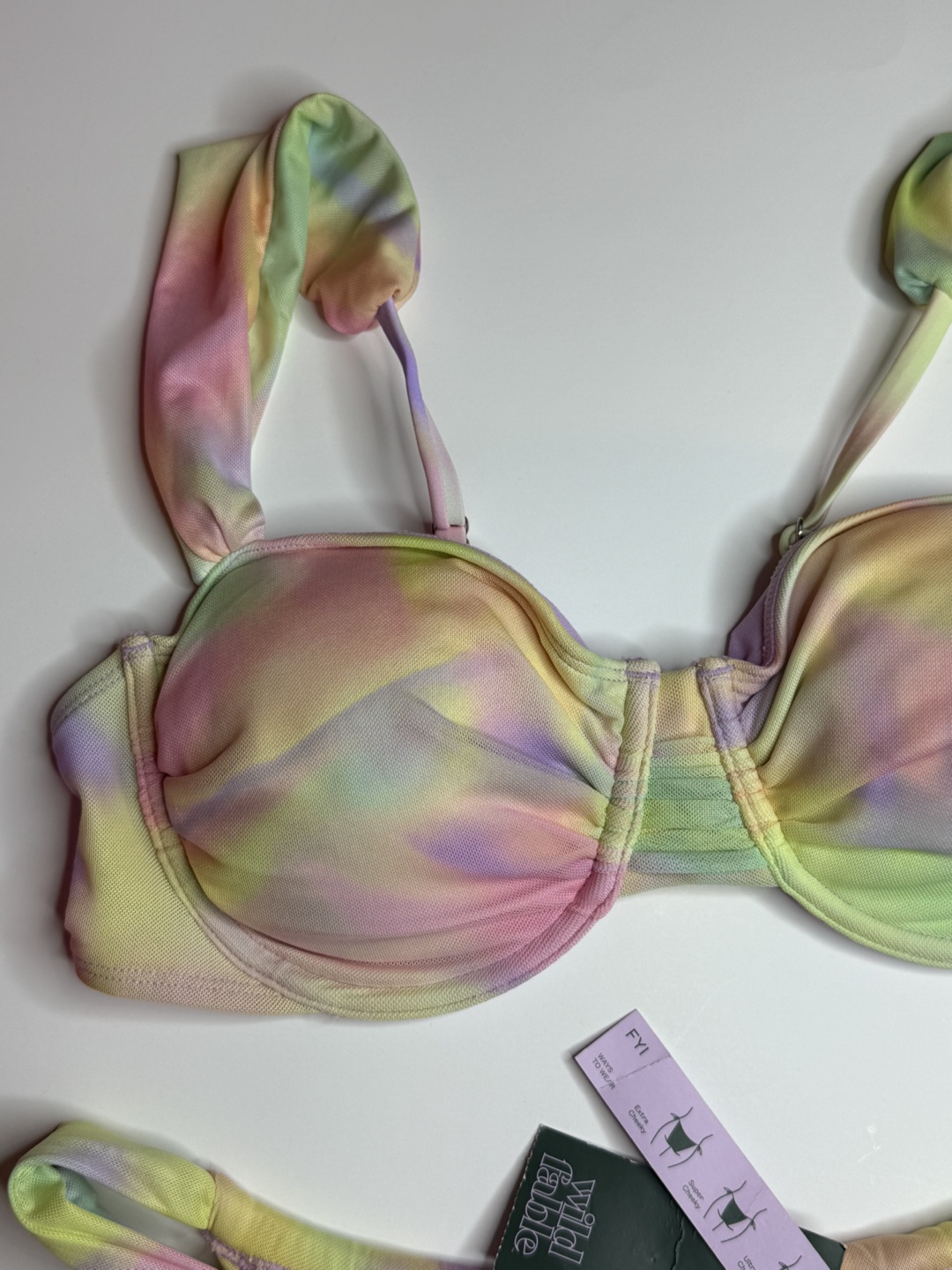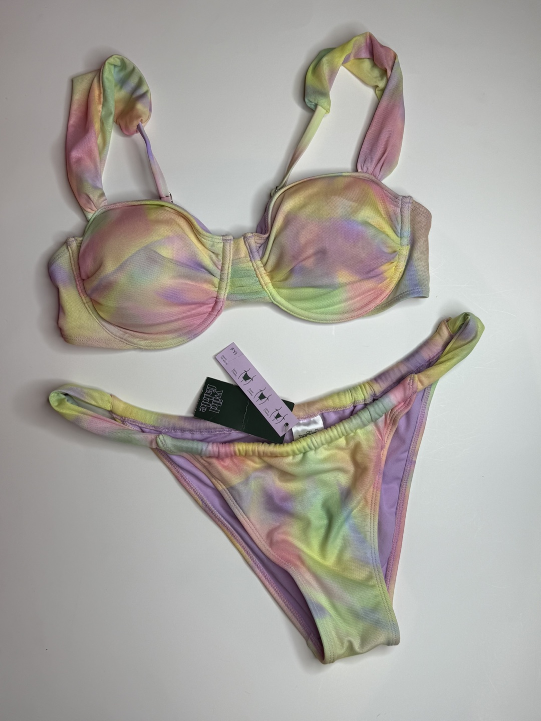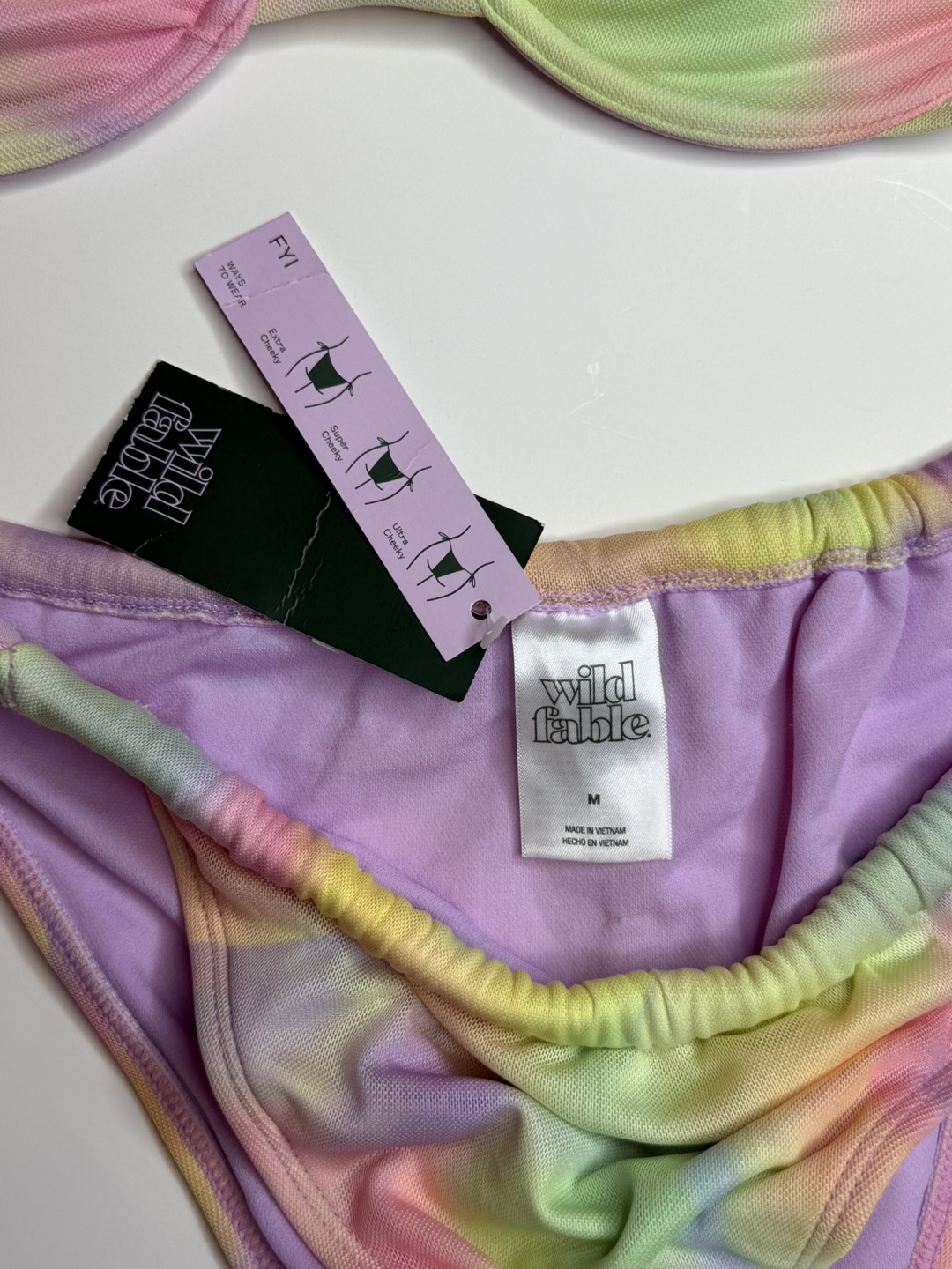 This Wild Fable bikini set is brand new with tags! It features a fun tie-dye pattern in pastel colours. The size is M. Can ship for extra $6