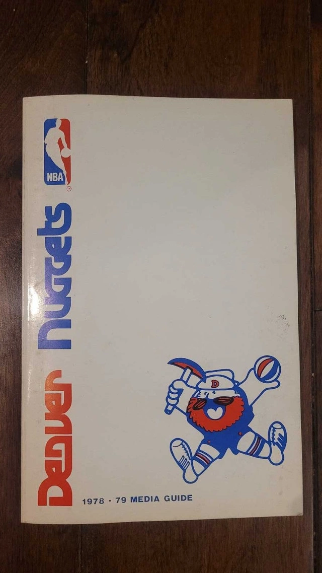 Vintage Denver Nuggets 1978-79 Media Guide, a piece of basketball history for avid collectors. This guide provides a snapshot into the Nuggets' season, featuring player profiles, team information, and season previews. Given its age, the guide is in good condition, showing some signs of wear that add to its vintage charm. $20, pickup in lakeshore/islington area. See listing for other vintage NBA media guides, from pet/smoke free collection. Thanks for looking. Cash accepted.
