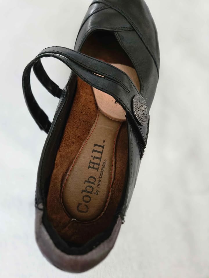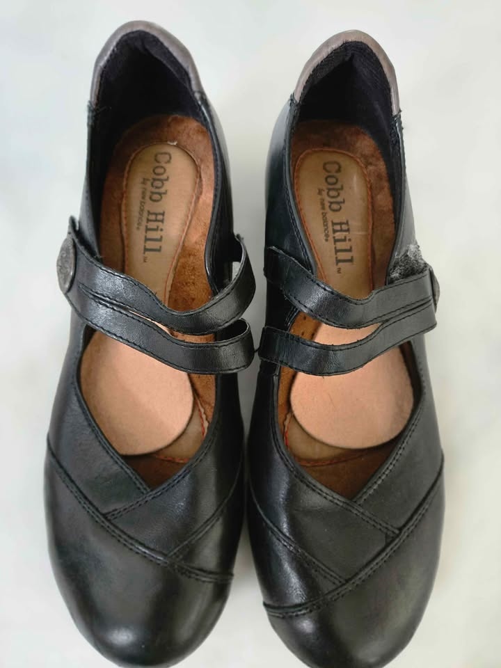 Cute black leather Mary Jane shoes by New Balance Cobb Hill. Velcro strap secure side closure. Raised heel cup. Size 7 1/2. No scuffs or scratches. Pickup in Lakeview in S.W.