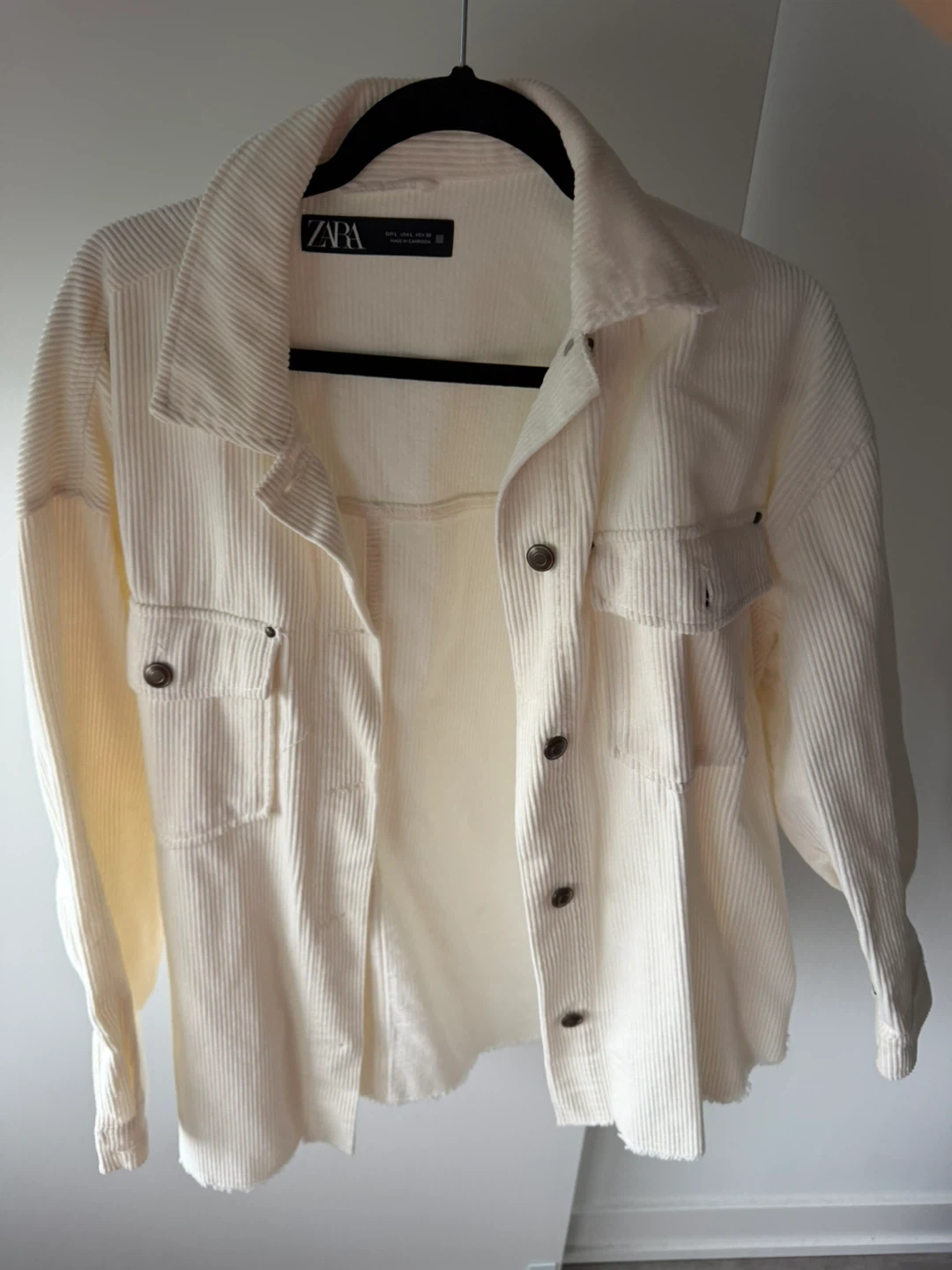 WOMEN’s. Cream coloured corduroy overshirt from ZARA. It's a size medium with two front pockets and button closures. Perfect for layering when it's a bit chilly out!