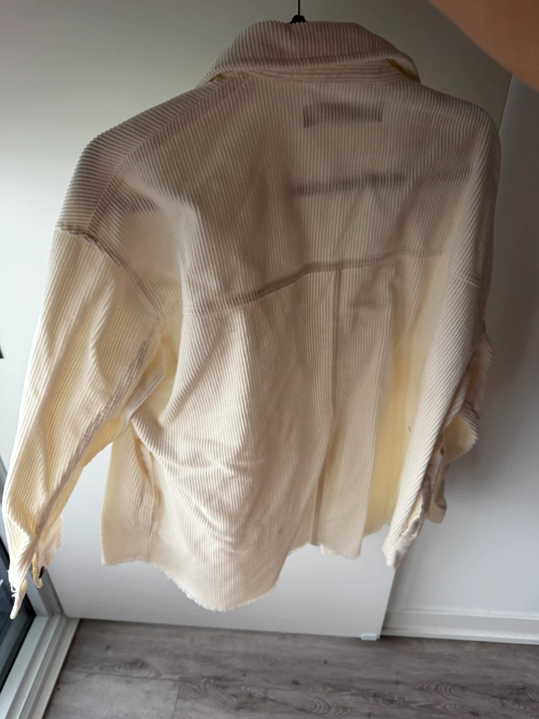 WOMEN’s. Cream coloured corduroy overshirt from ZARA. It's a size medium with two front pockets and button closures. Perfect for layering when it's a bit chilly out!