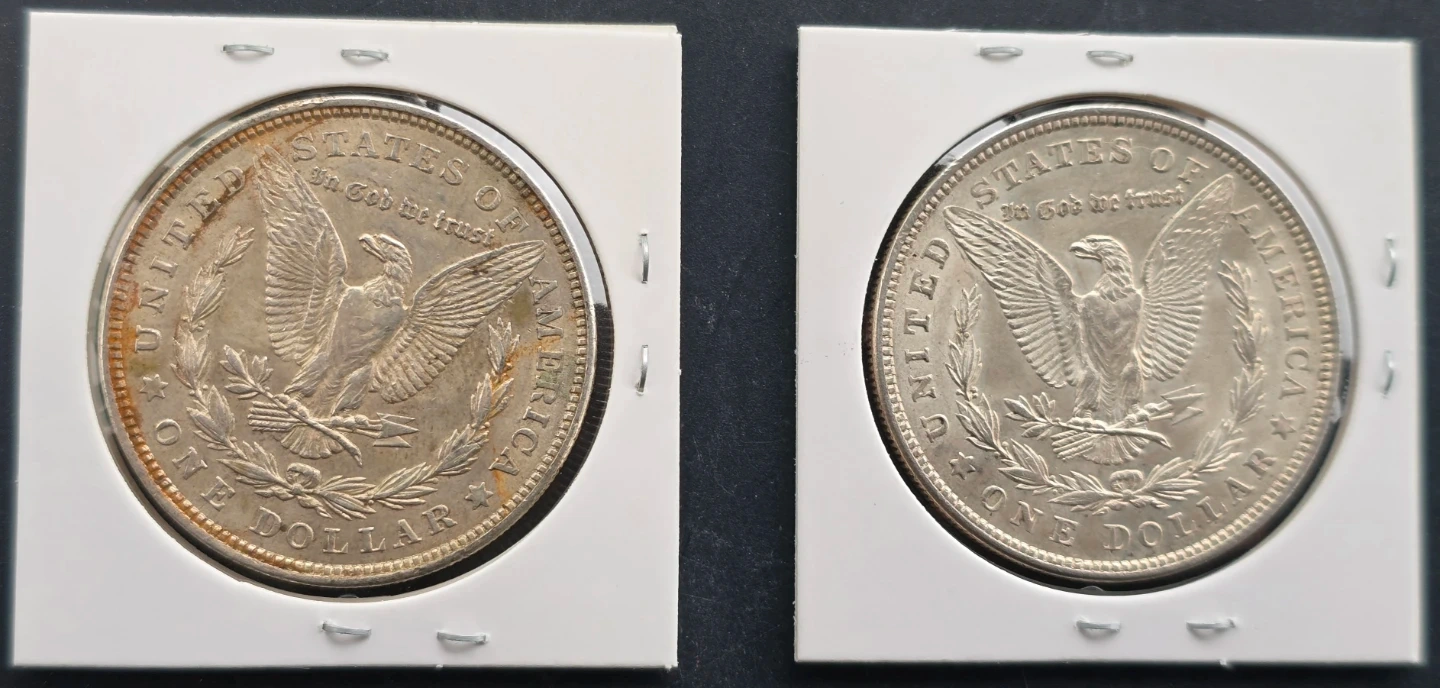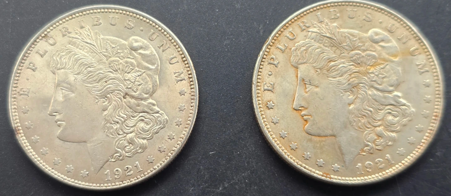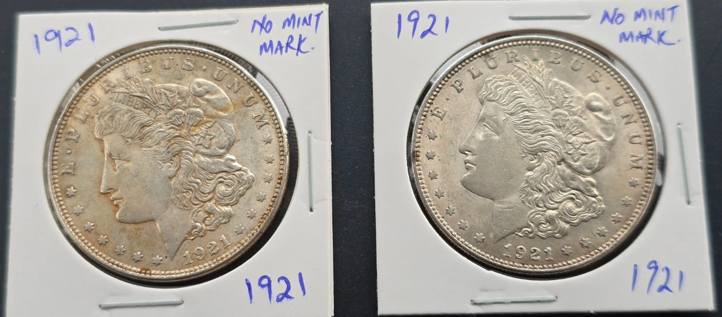 (2)1921 Morgan 90% Silver $ Lot-No Mint Mark. Great Eye Appeal!!