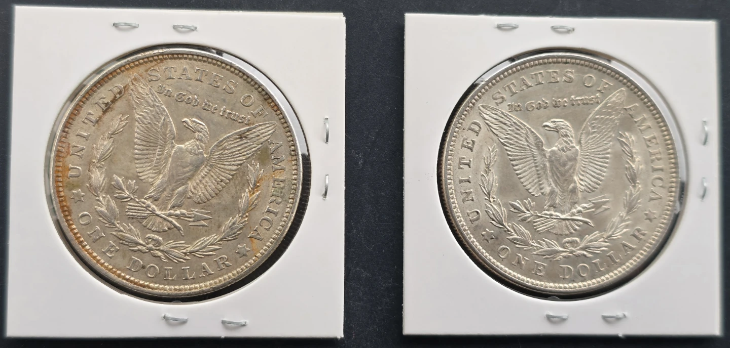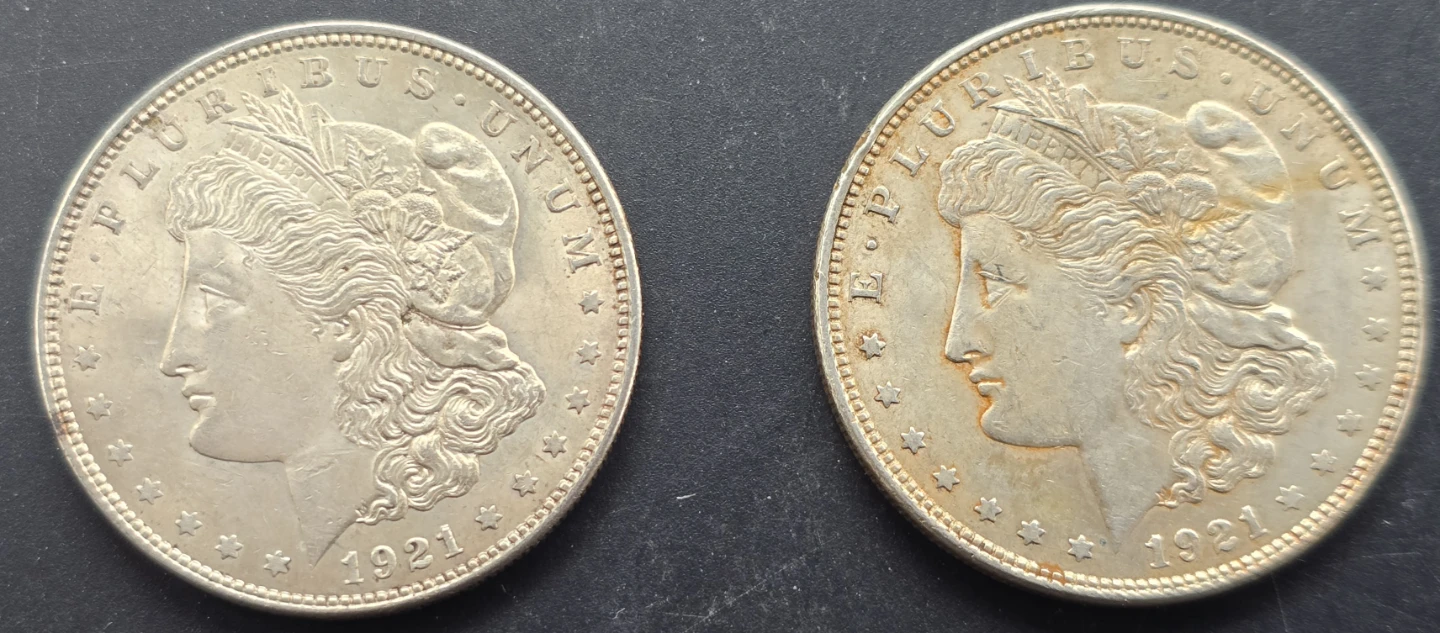 (2)1921 Morgan 90% Silver $ Lot-No Mint Mark. Great Eye Appeal!!