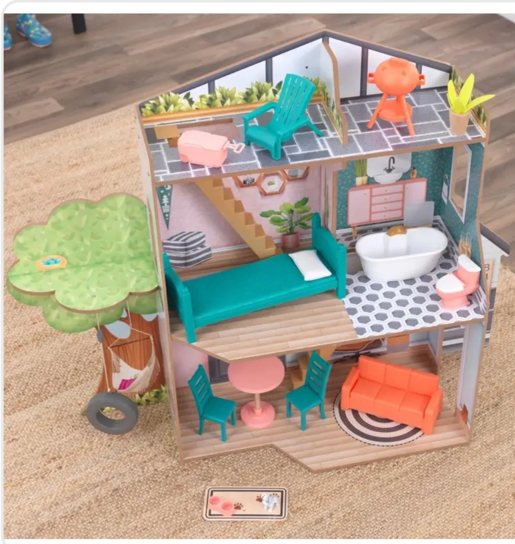 Awesome KidKraft dollhouse designed like a treehouse. It features multiple levels and comes with miniature furniture and accessories for endless play. This toy encourages creative storytelling and imaginative fun!