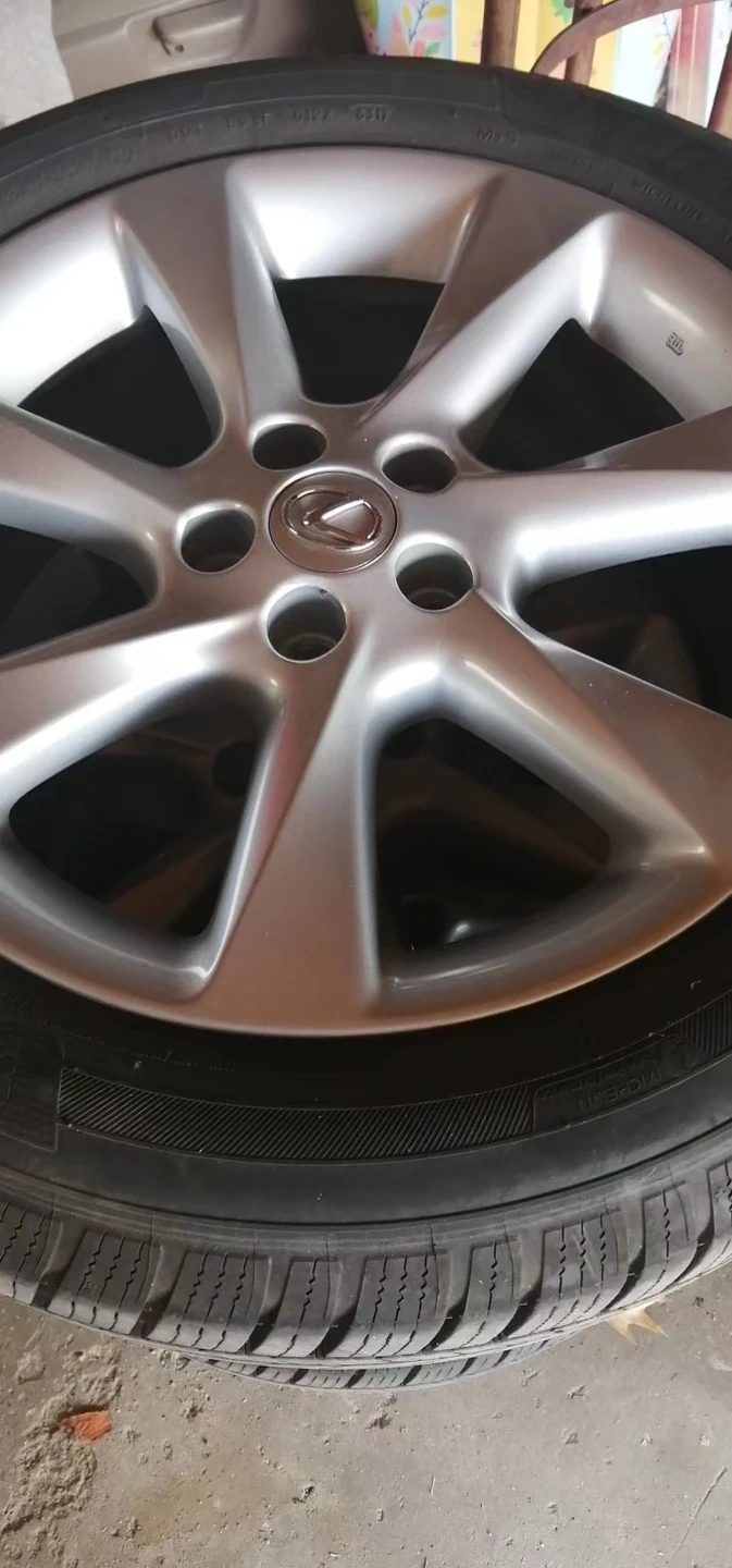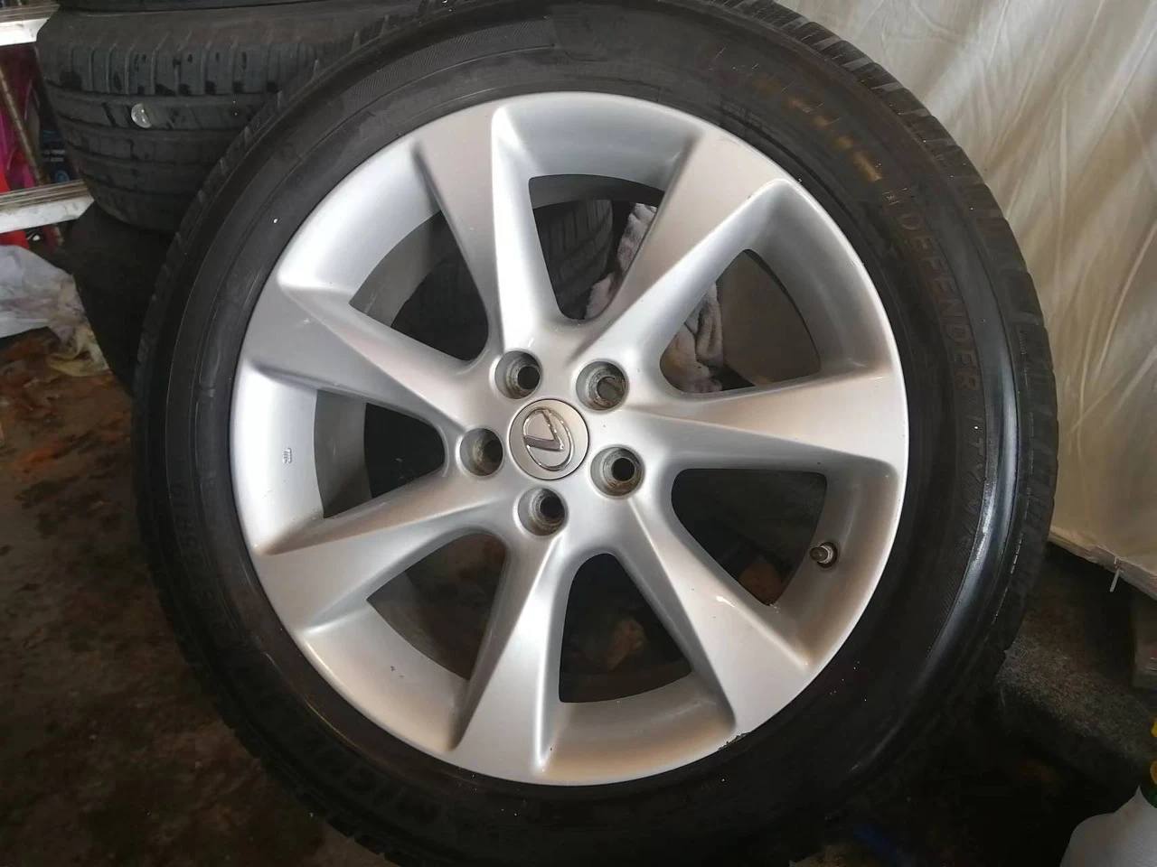 Set of 4 Lexus RX350 19" OEM wheels with Michelin Defender LTX all season tires. 235/55/19 105H. These have a 5x114.3 bolt pattern with a 60.1 bore. Rims have normal wear, such as stone chips. No curb rash. Tires were used 1 season. Lots of tread left as shown. Pickup by Brimley and Finch in Scarborough