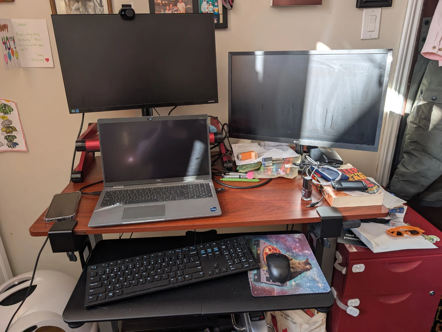 I am selling a Flexispot brand mechanical sit/stand desk in good condition. The keyboard tray is included. Will be disassembled prior to pickup. Smoke-free and cat-friendly home. Offers welcome.