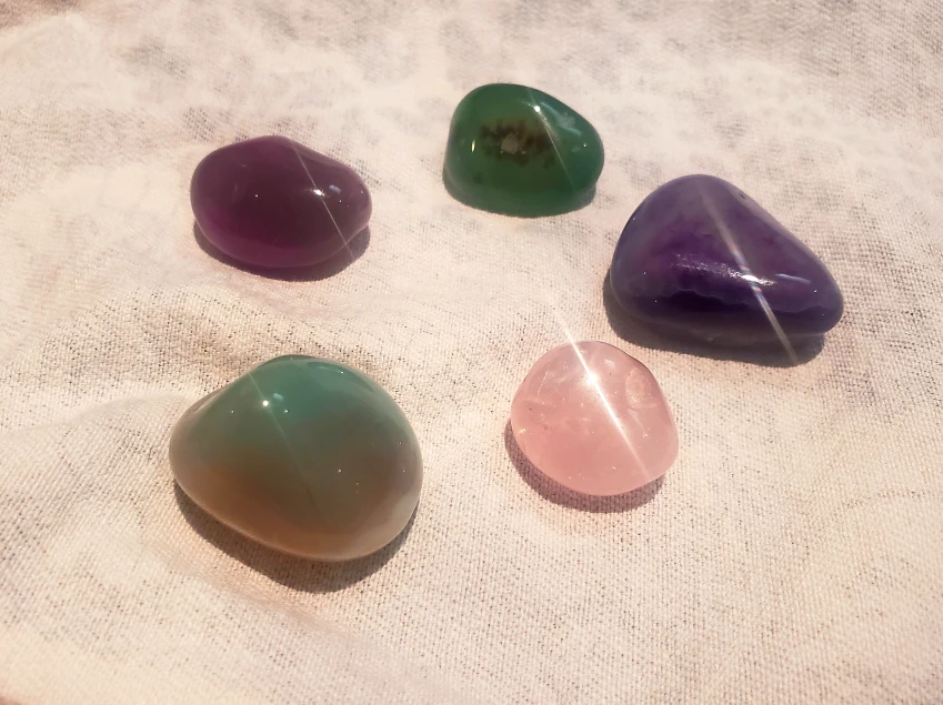 Five assorted crystals of different colors- two pink, green, grey, purple. Can sell separately if interested. Available for pick up