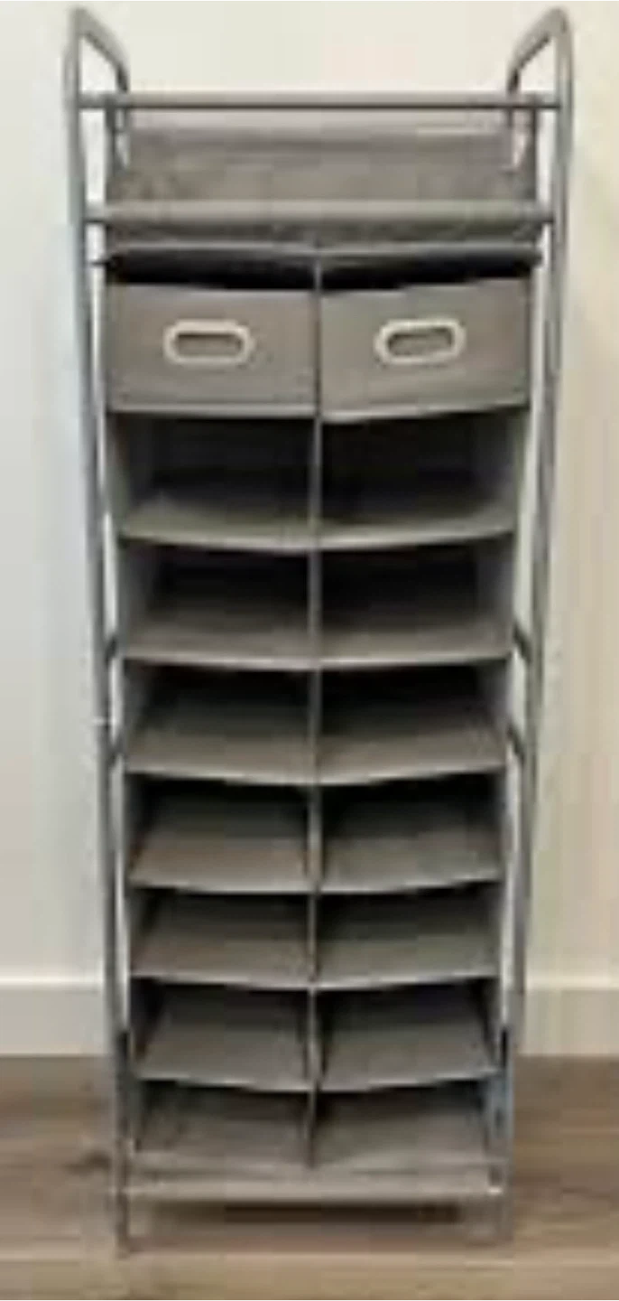 grey shoe rack organizer. It's perfect for keeping your shoes tidy and out of the way.