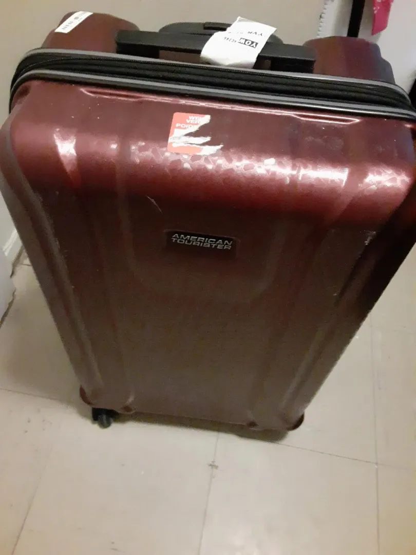 This American Tourister hardside spinner luggage is a stylish maroon colour. It's a reliable piece for your travel needs. Hardside construction provides durability.