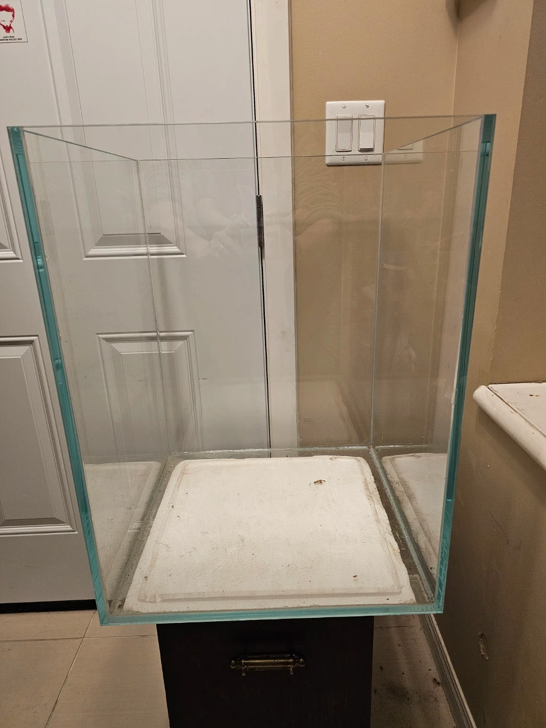 This is a clear glass aquarium tank. It's suitable for aquatic setups. The tank is made of glass. Its 25" High, 19" width, 19" length. 50 gallon. Was custom made for our brand new aquarium set up but was never used. I paid $500 when got it. She has just been sitting in my storage, collecting dust for the past 6 months.