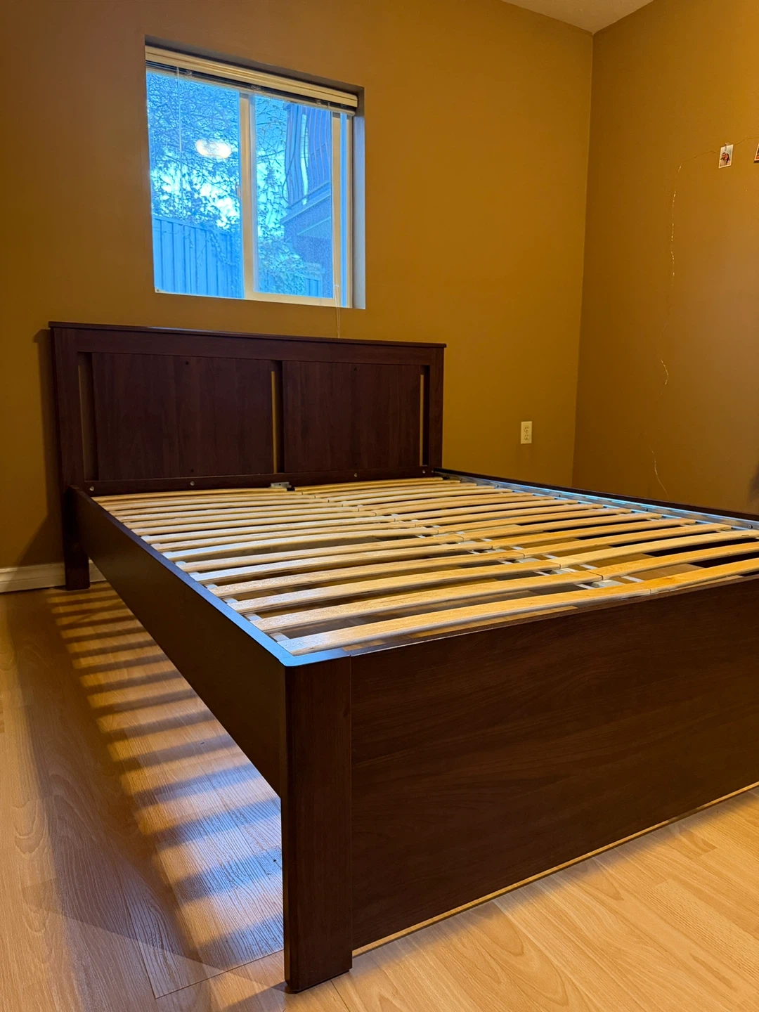 Dark Wood Queen Bed Frame with Slatted Base