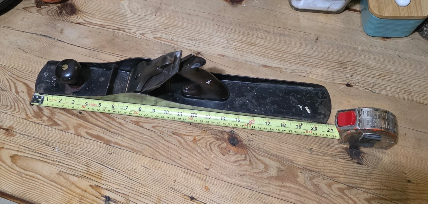 This is a Stanley No. 7 smoothing plane. It's made of metal and wood. The plane measures approximately 22 inches long Cash only, No etransfers No holds, first come, first serve Cross listed Serious inquiries only Location: Toronto, Junction. Dundas and Keele