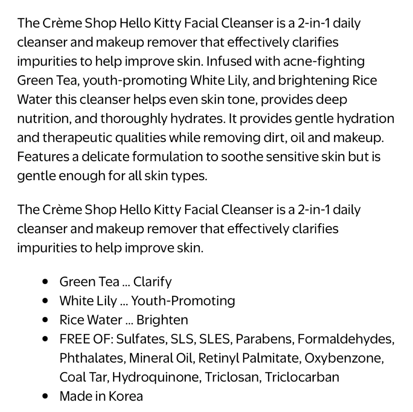 Crème x Hello Kitty Double Cleanse Facial Cleanser (NEW)
