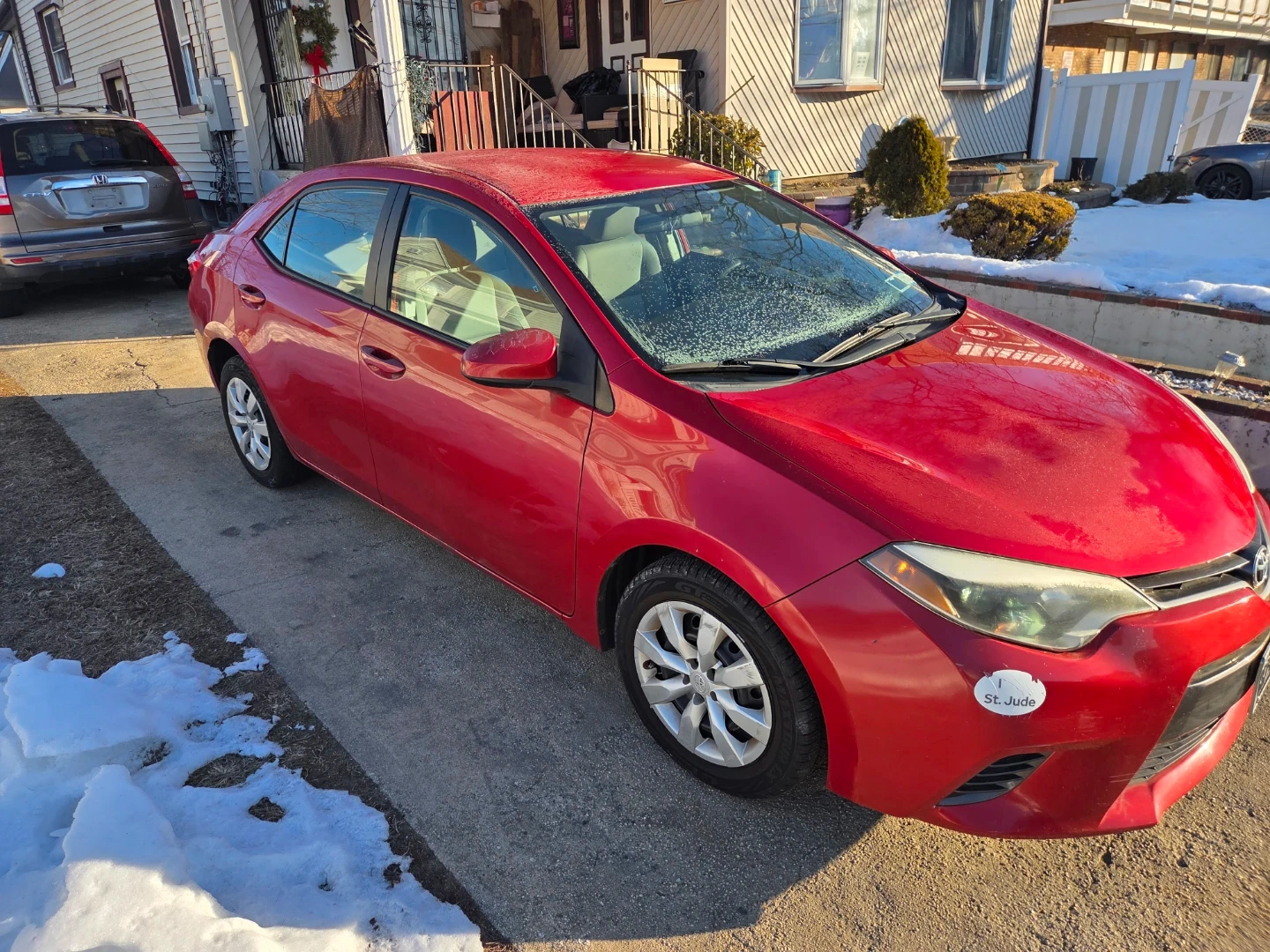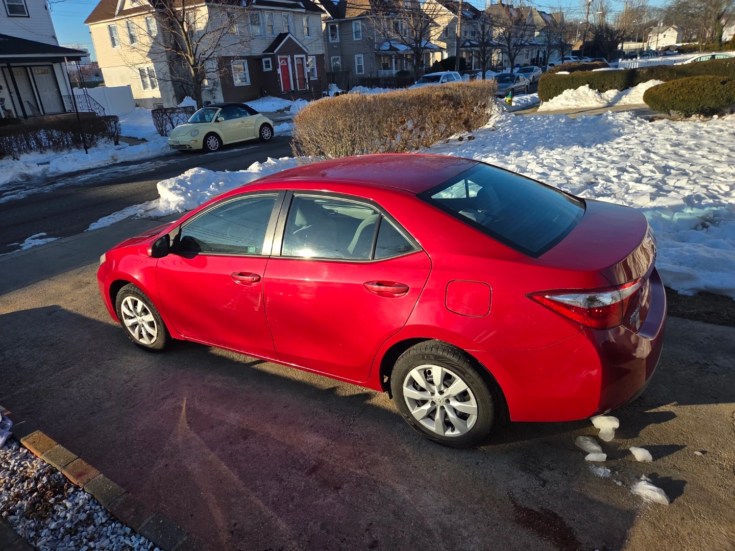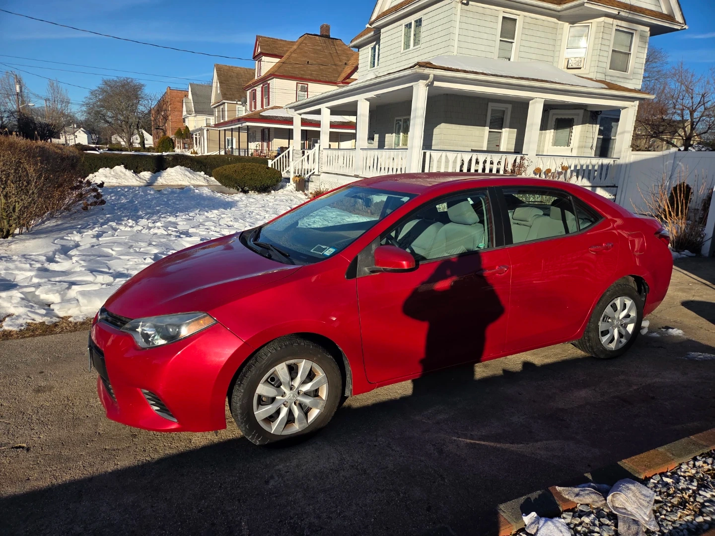 This is a red 2015 Toyota Corolla LE sedan. It has four doors and seating for five. No lights on the dash, clean NY Tittle, new tires, no accidents. And Only 69,995miles.
